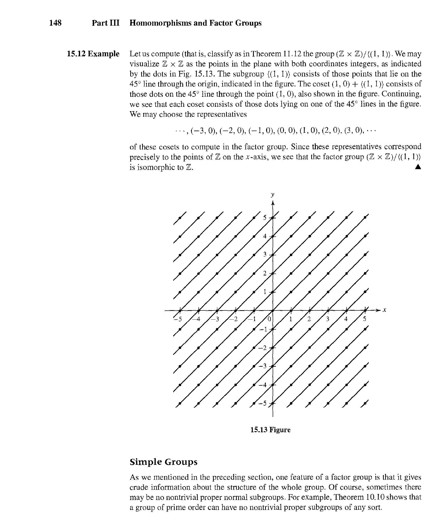本练习是定理15.8在无限群上的应用。通过几何直觉或代数推导,可以发现用y轴去模掉整数格点平面,得到的结果在结构上等同于x轴,即整数群 $\mathbb{Z}$。