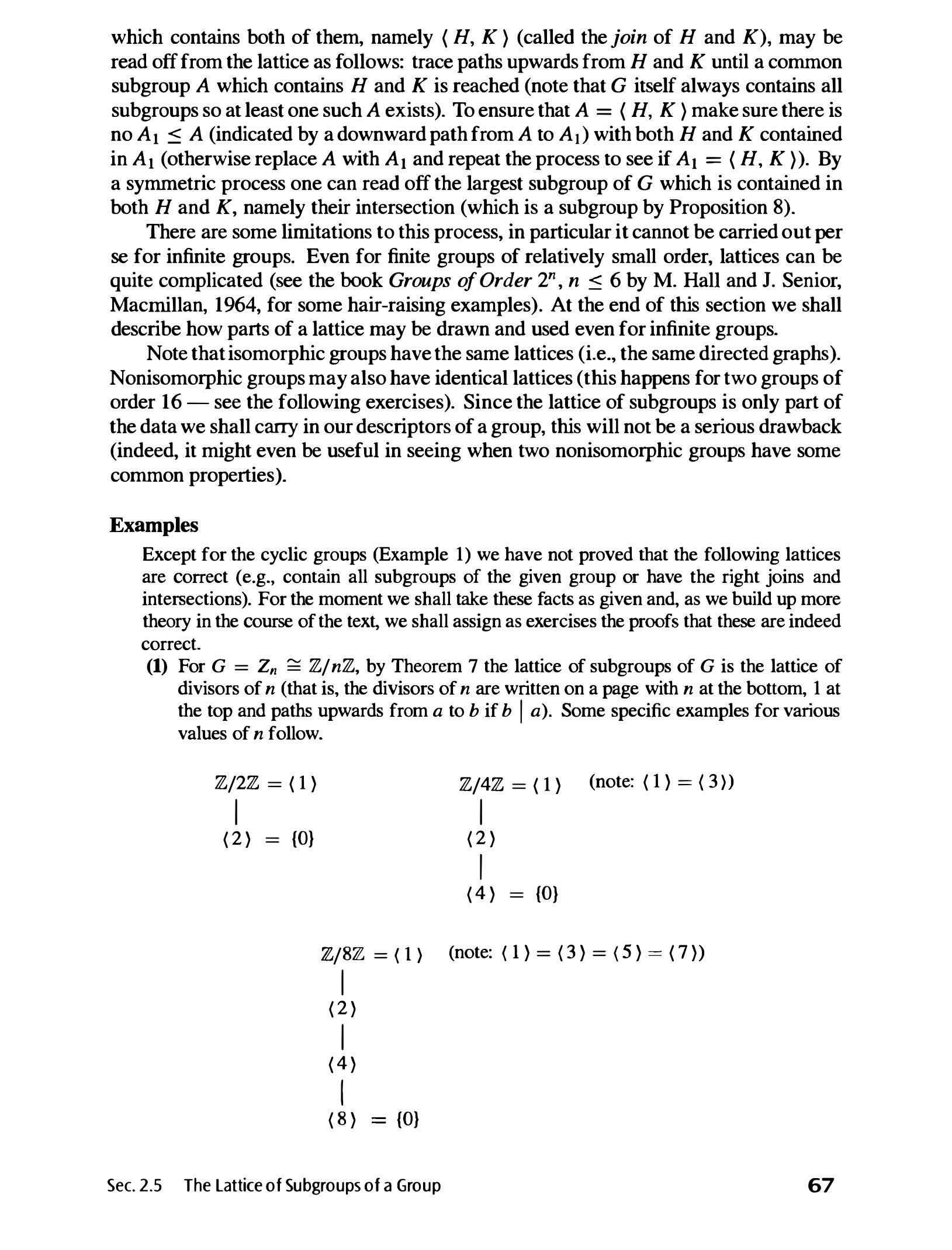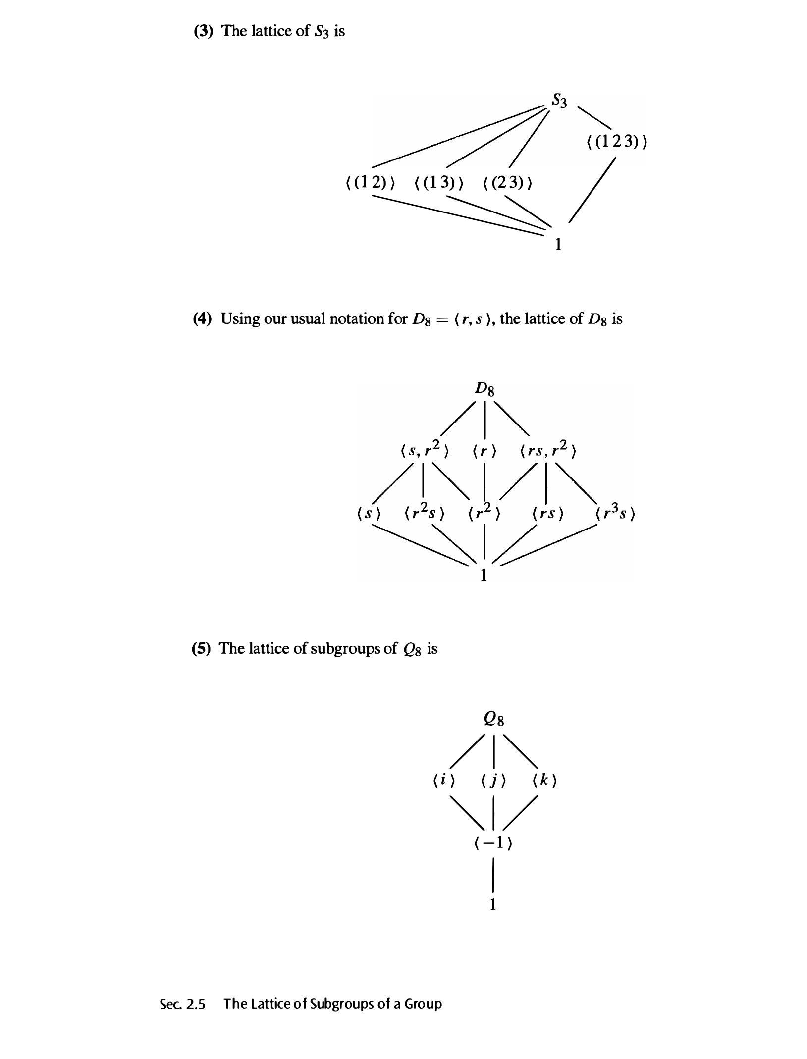 除了循环群(例子 1)之外,我们尚未证明以下格是正确的(例如,包含给定群的所有子群或具有正确的并和交集)。目前,我们将这些事实视为已知,并且随着我们在正文中建立更多理论,我们将把证明这些事实的任务作为练习。