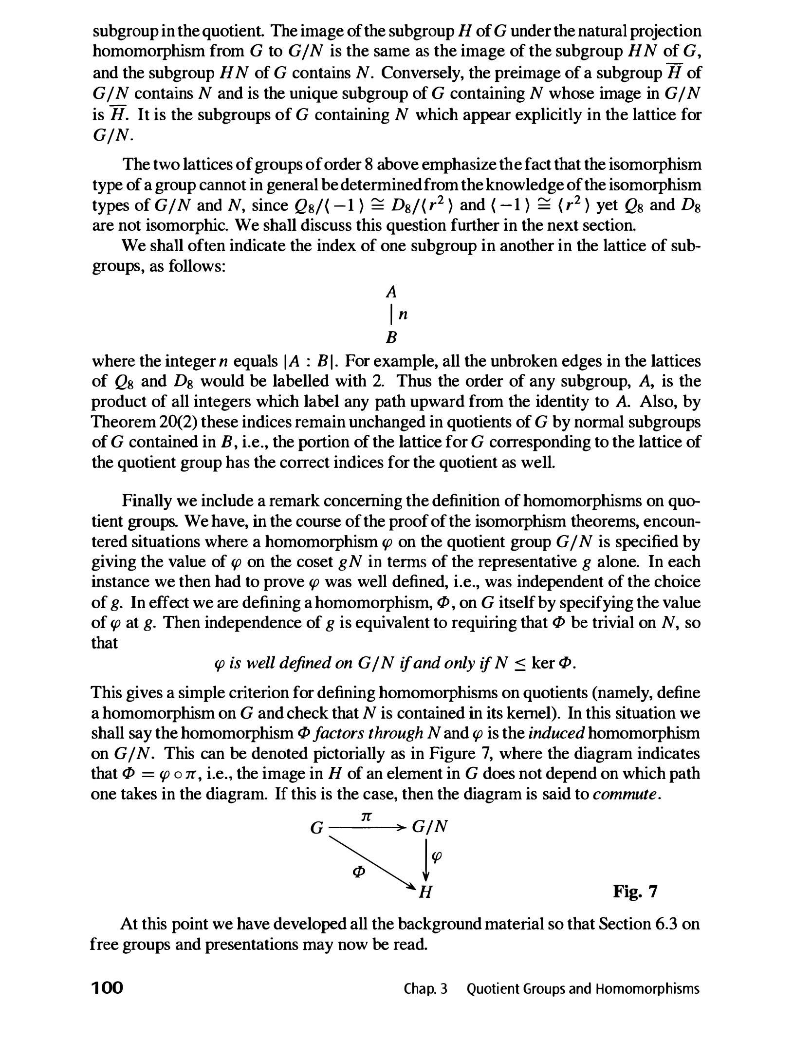 - 回顾与深化:作者首先提到,本节的内容是建立在前面第1节(推测应为3.1节)中关于商群和同态初步讨论的基础之上的。这意味着我们将要学习的内容不是全新的,而是对已有知识的直接推论和深化。这种写作方式有助于知识的连贯性。