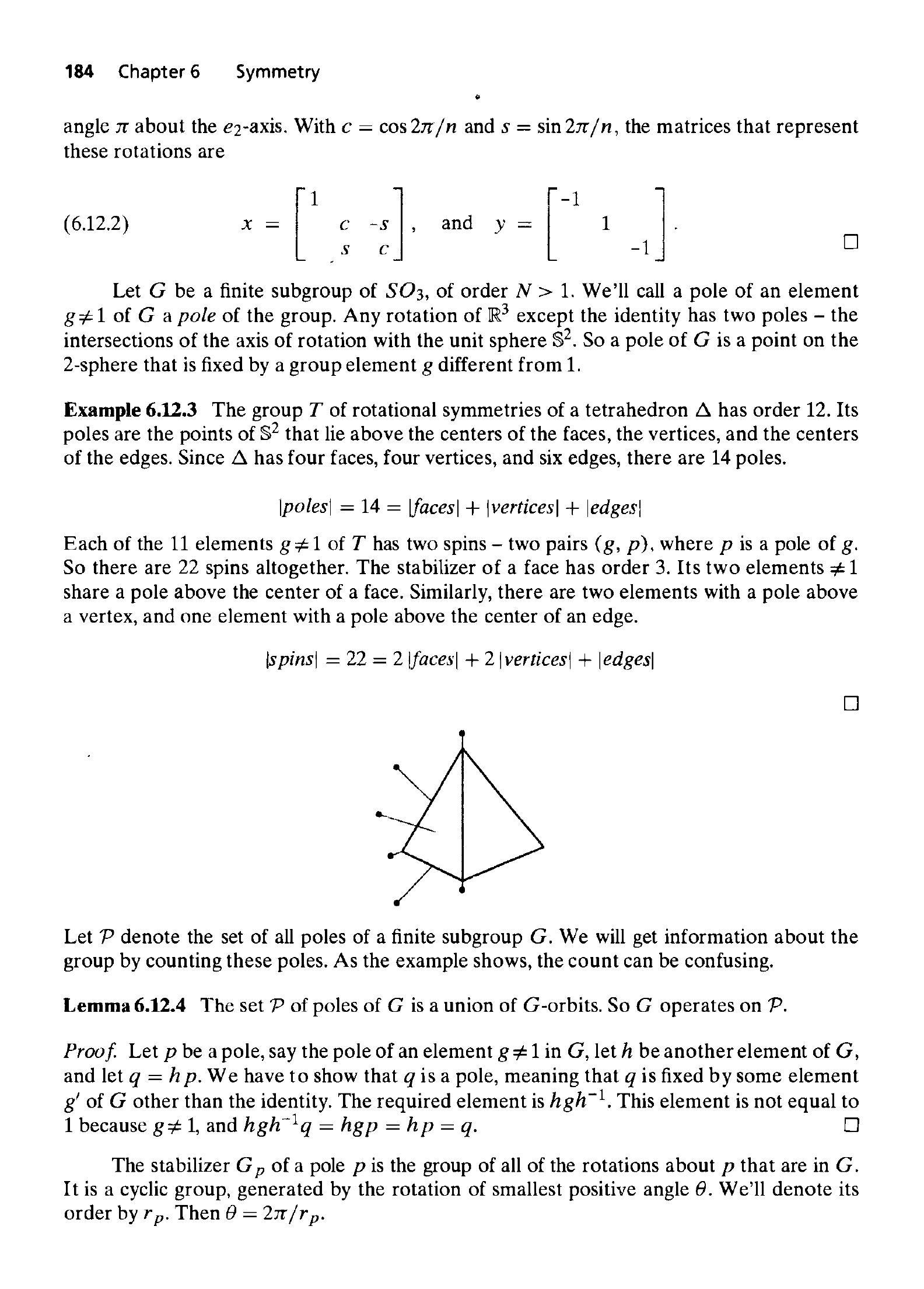 • 这是一个特殊的群,对应正四面体的旋转对称性。一个正四面体有4个顶点,4个面,6条棱。