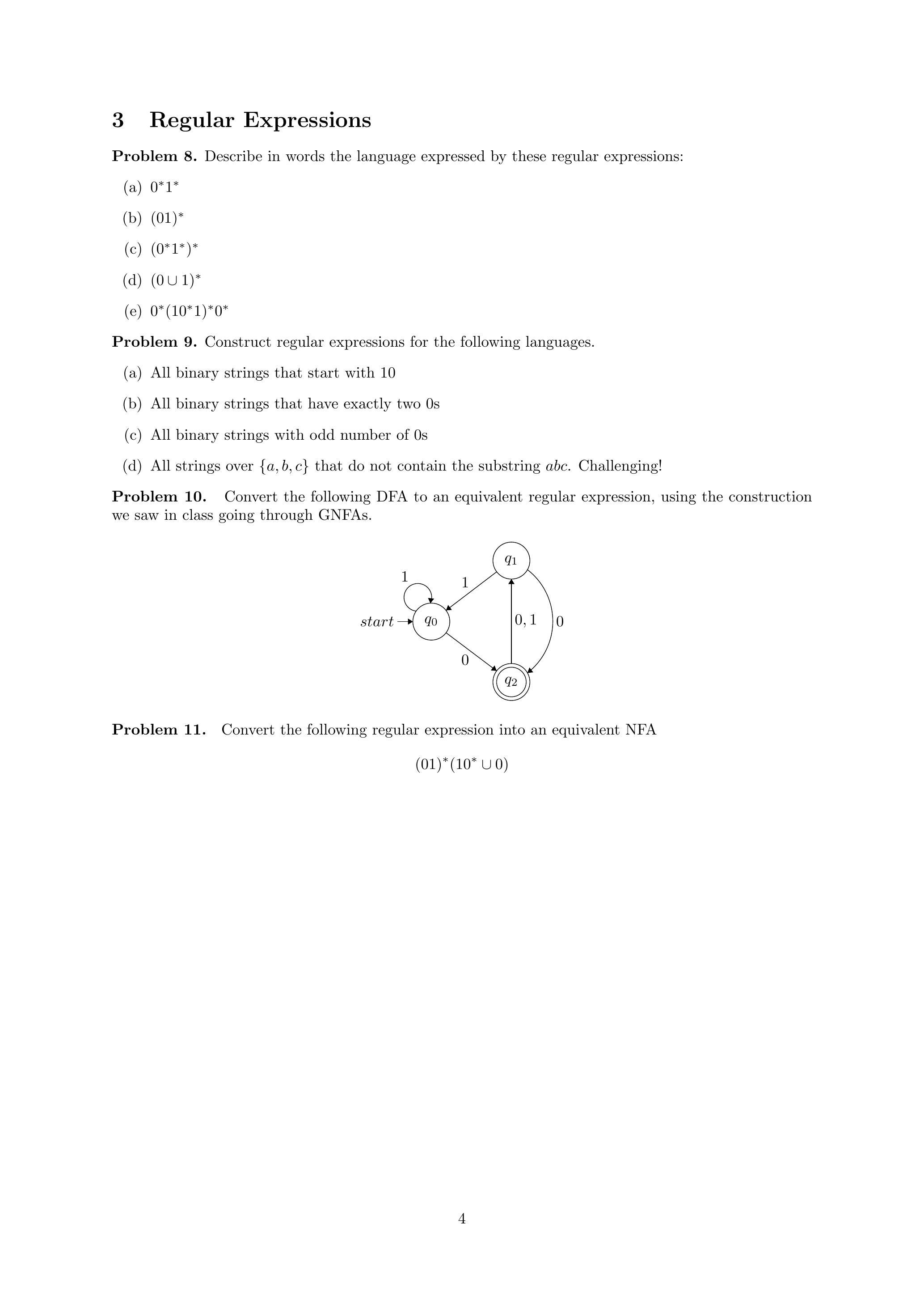 - $q_3 \xrightarrow{0,1} q_3$