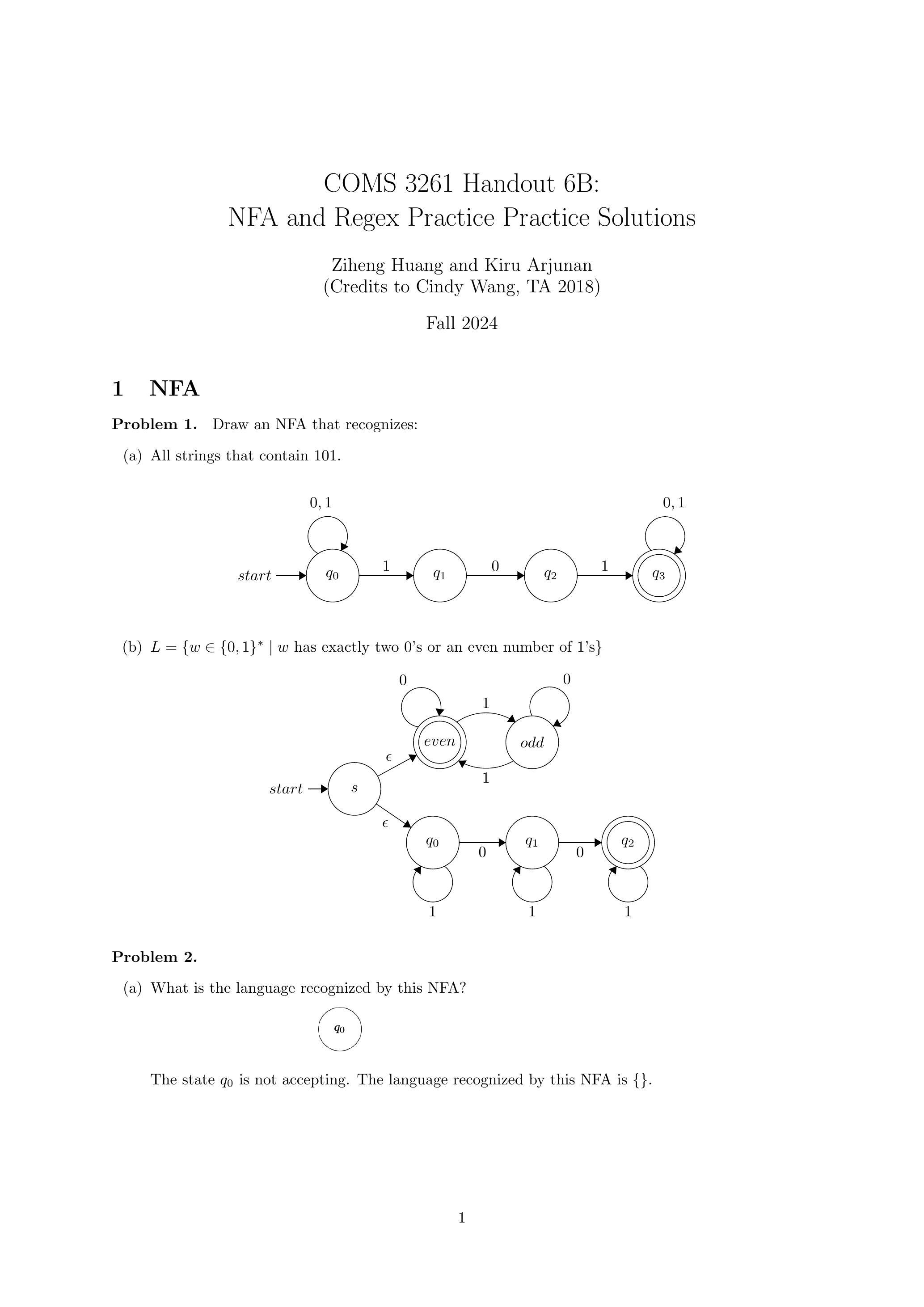 1 COMS 3261 讲义 6B: NFA 和正则表达式练习题解答