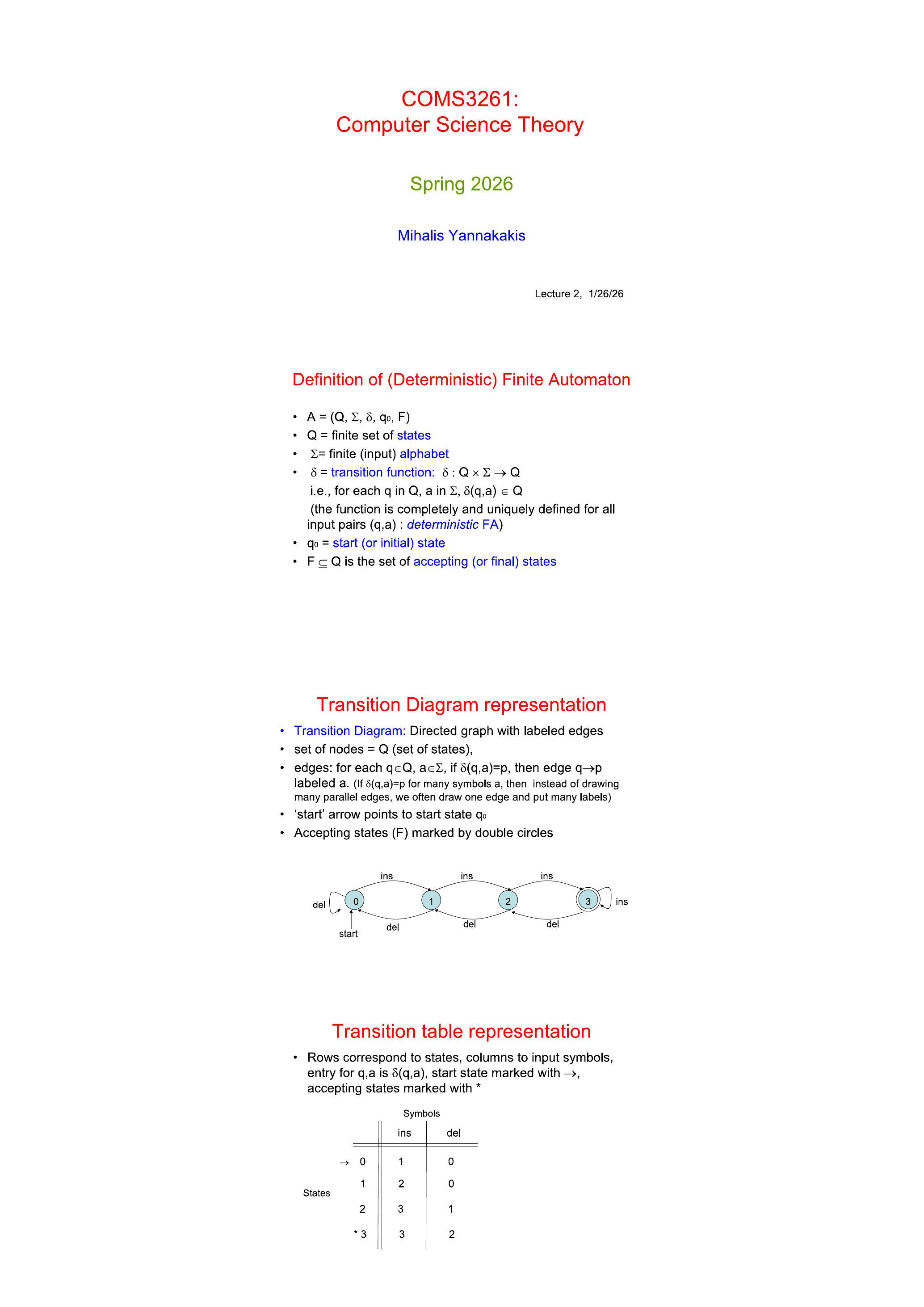 2COMS3261: 计算机科学理论 讲座 2, 26/1/26