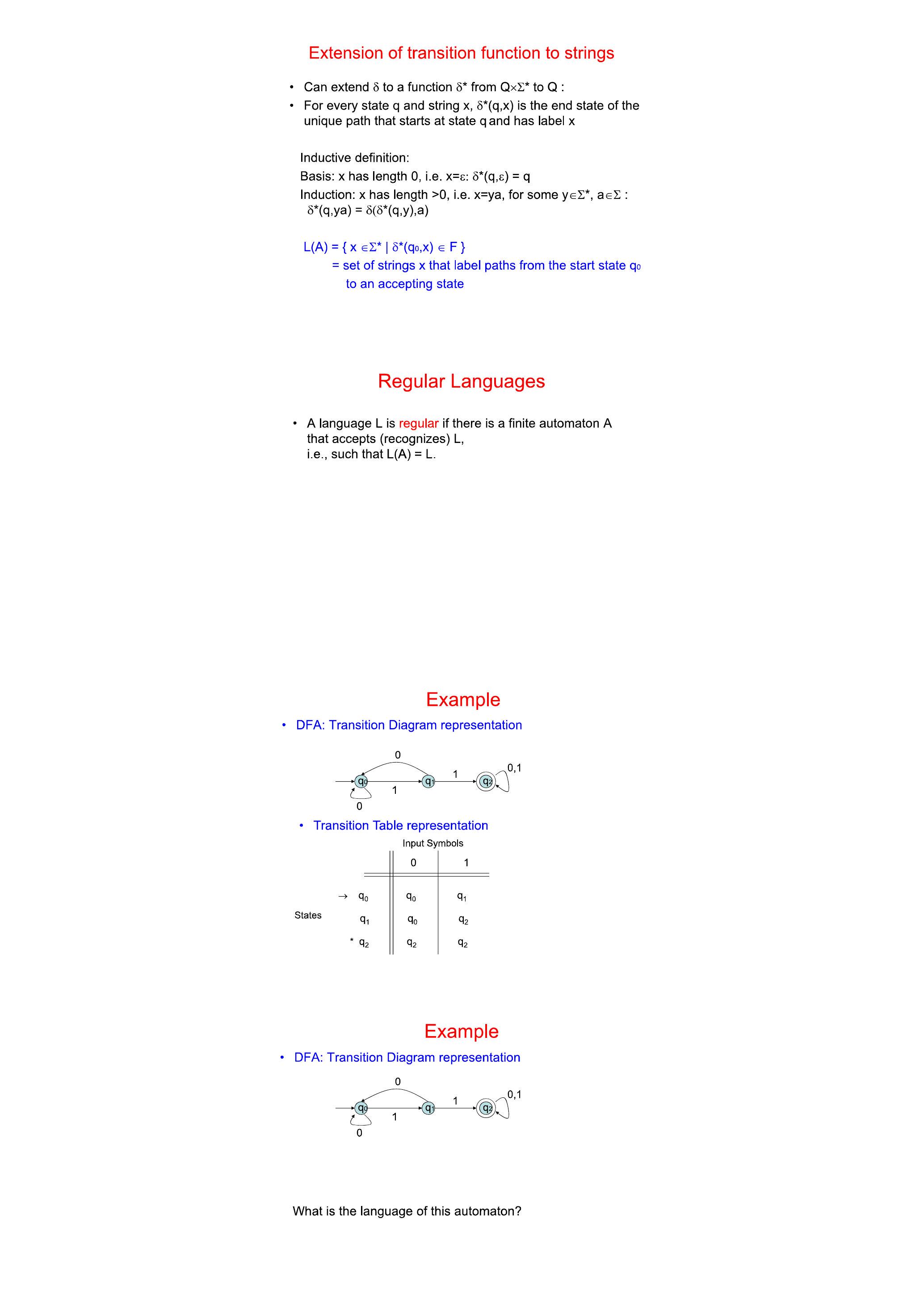 \mathrm{L}(\mathrm{A}) & =\left\{\mathrm{x} \in \Sigma^{*} \mid \delta^{*}\left(\mathrm{q}_{0}, \mathrm{x}\right) \in \mathrm{F}\right\} \\