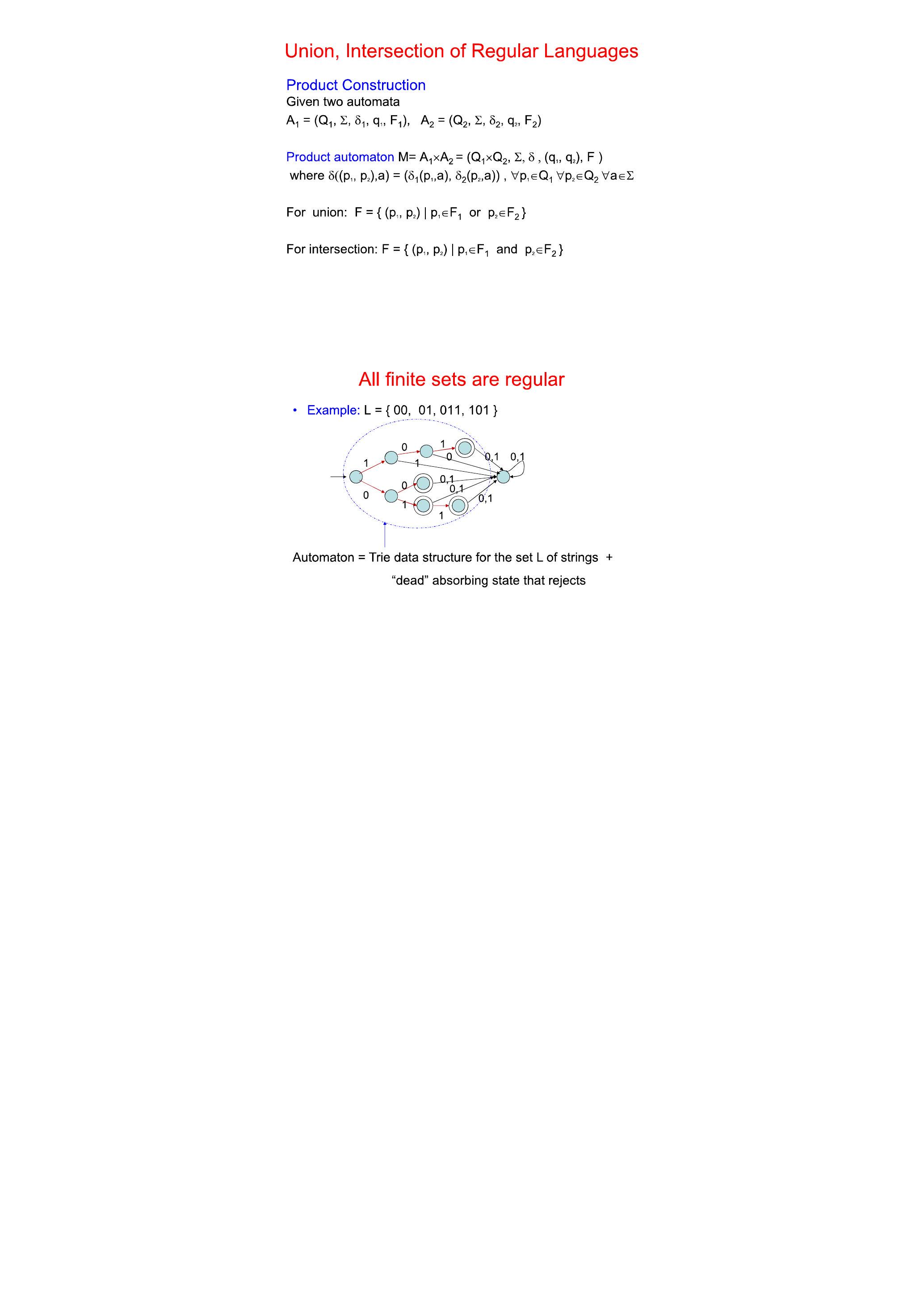 - 这是用来证明上述定理的构造性方法。其核心思想与上一节的例子完全相同:并行模拟两个DFA。