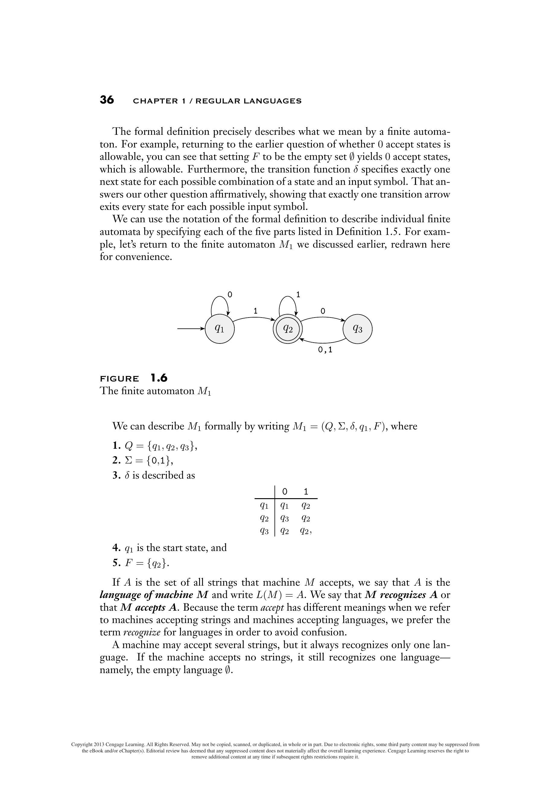 我们可以通过写 $M_{1}=\left(Q, \Sigma, \delta, q_{1}, F\right)$形式化地描述 $M_{1}$,其中