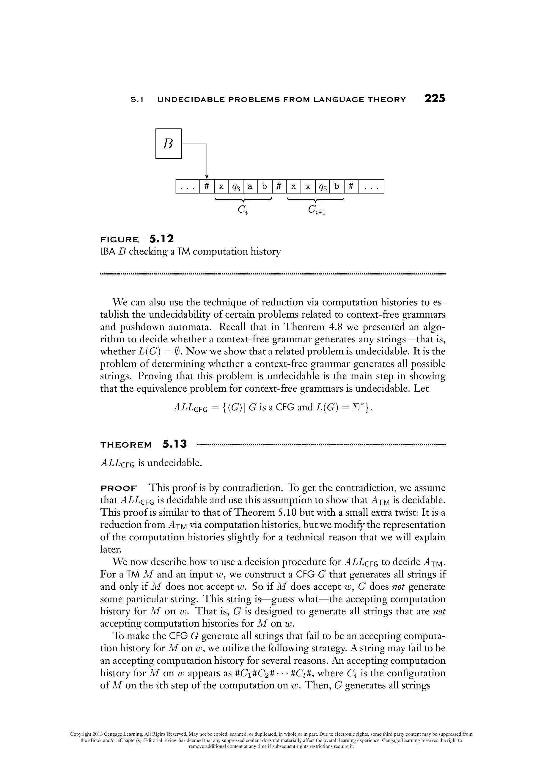 在练习5.1中,您可以使用定理5.13来证明$E Q_{\mathrm{CFG}}$是不可判定的。