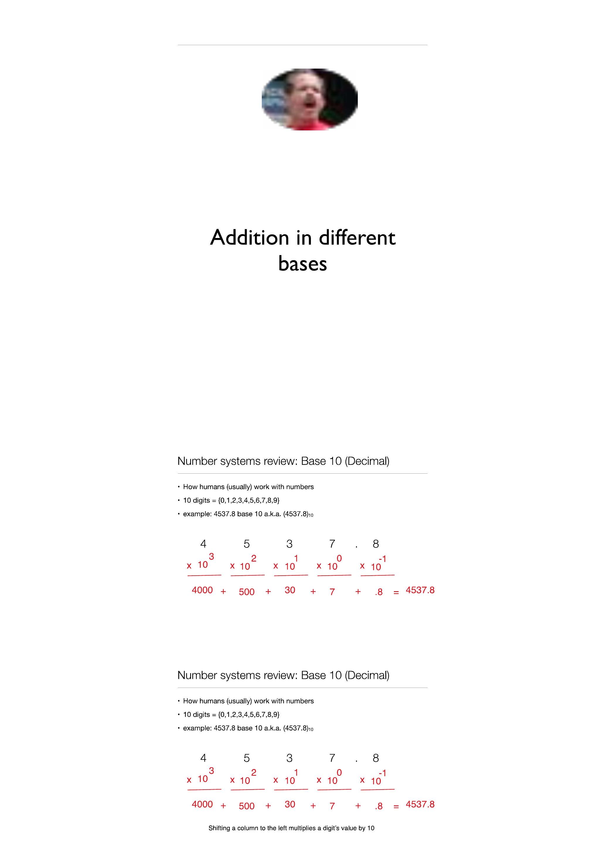 - 示例:4537.8 基数 10 又名 $(4537.8)_{10}$