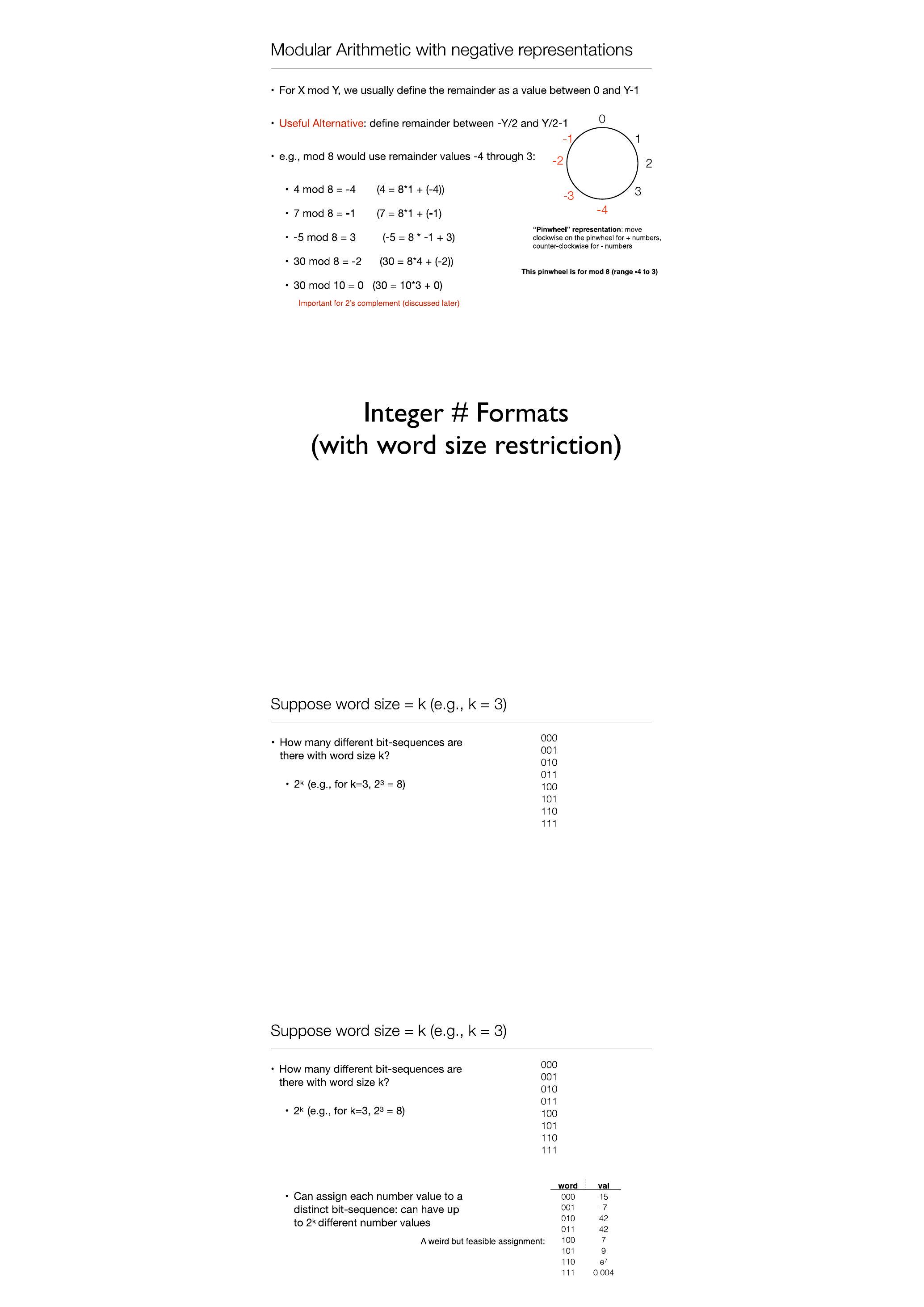 - 注意:我们需要位序列到值的替代映射(与无符号二进制使用的不同),以便某些位序列表示负数