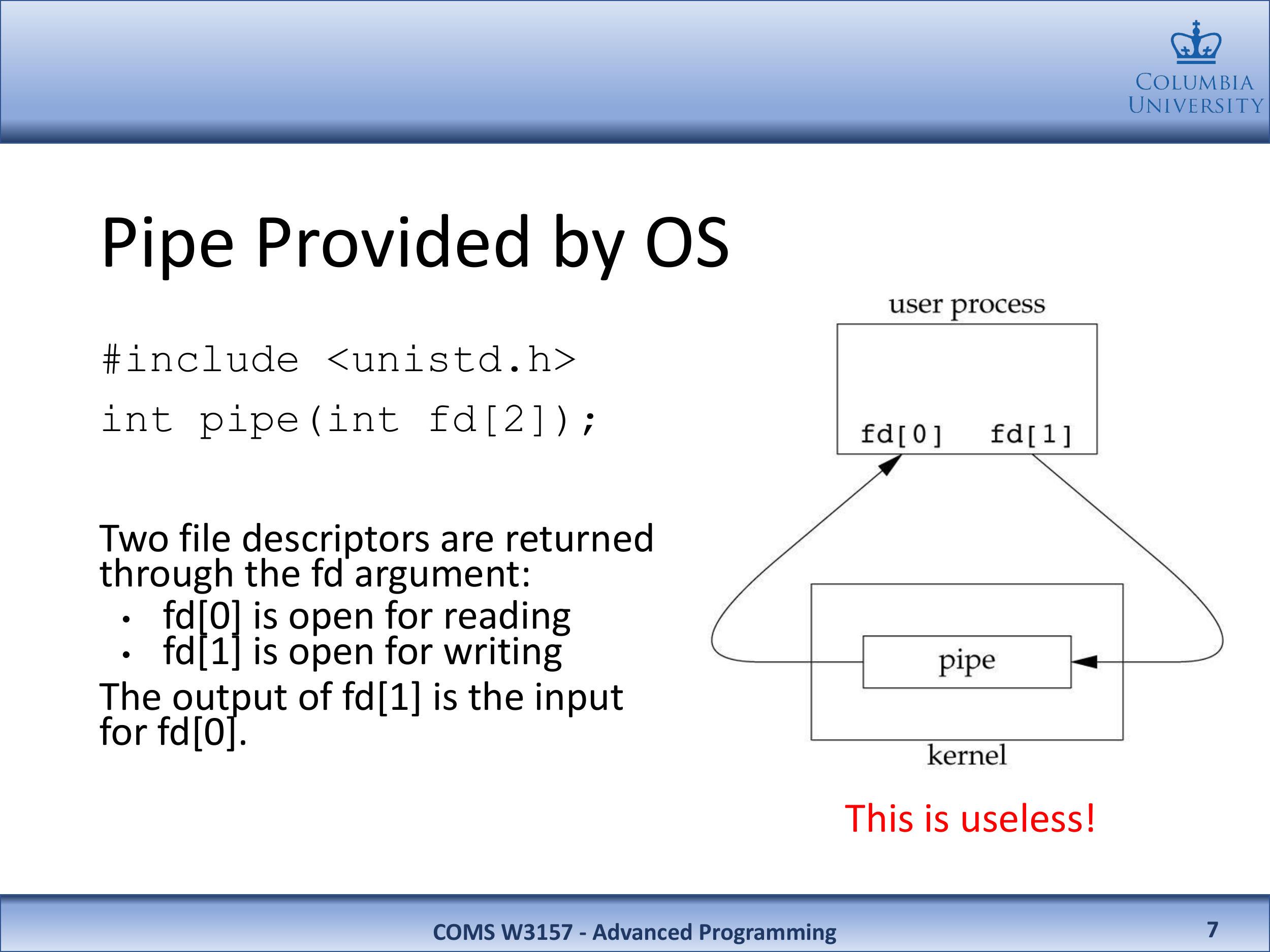 正如我们刚刚所见,单个进程中的管道几乎无用。