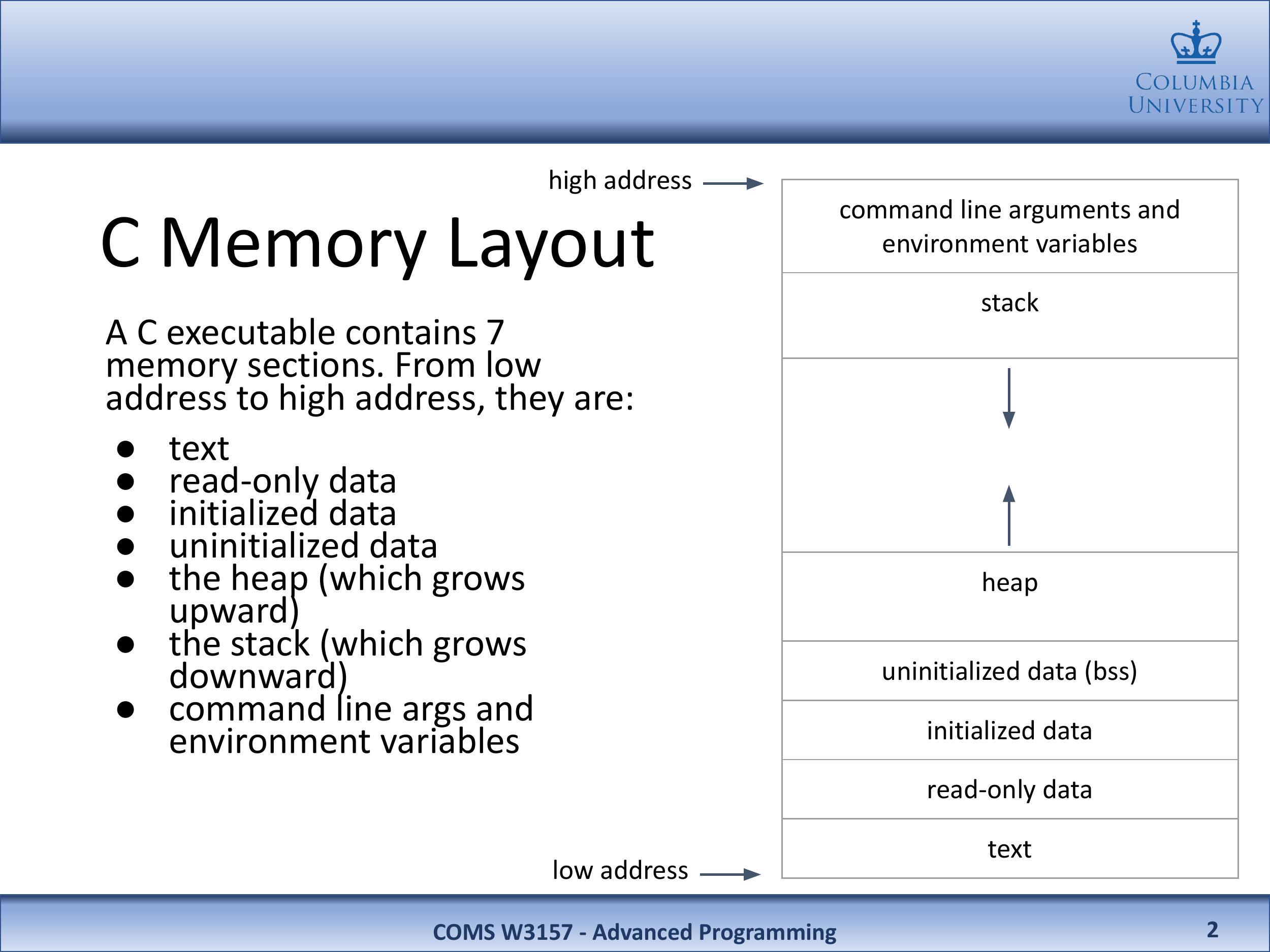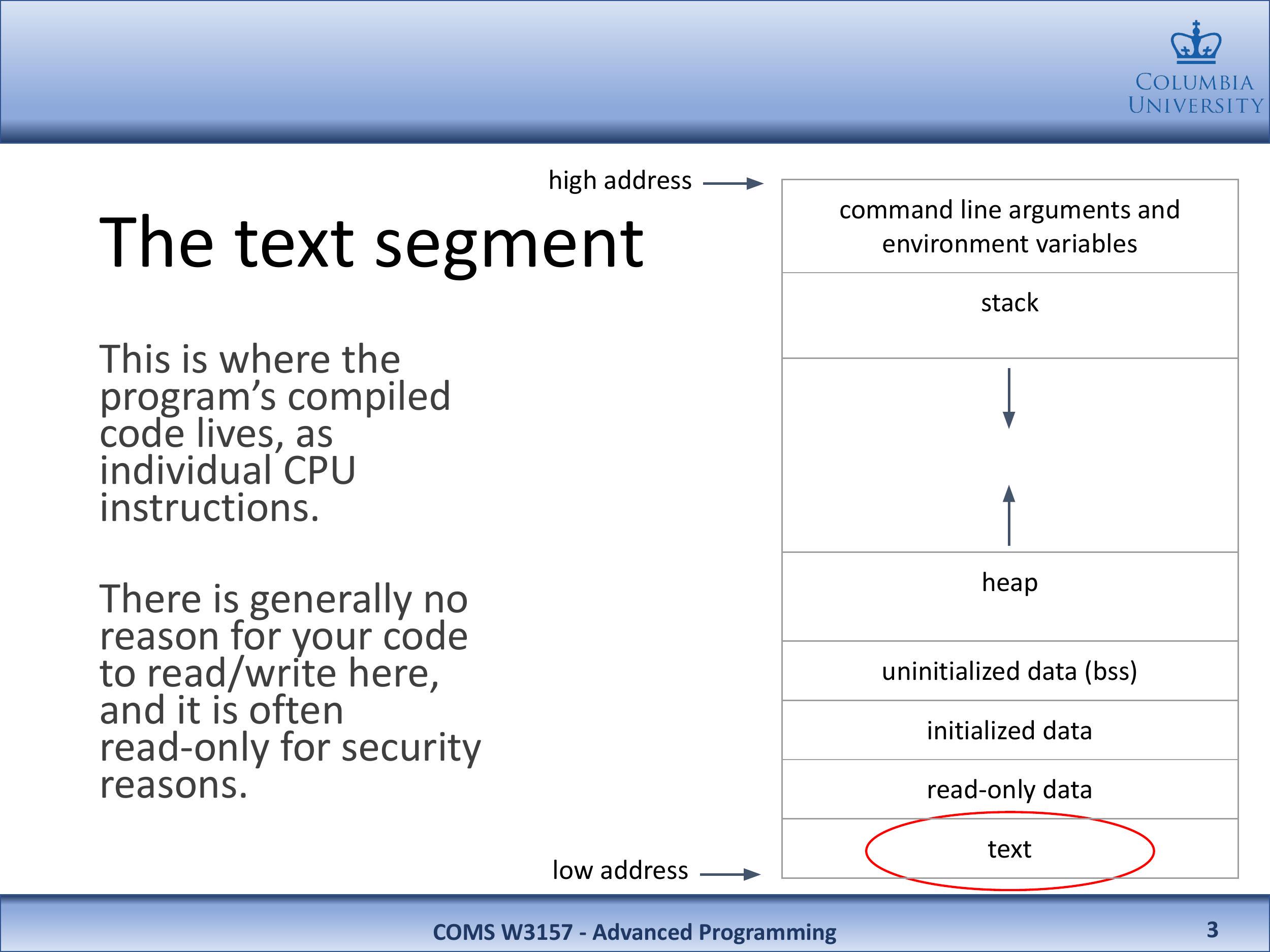 | 低地址 ⟶ | 文本 |