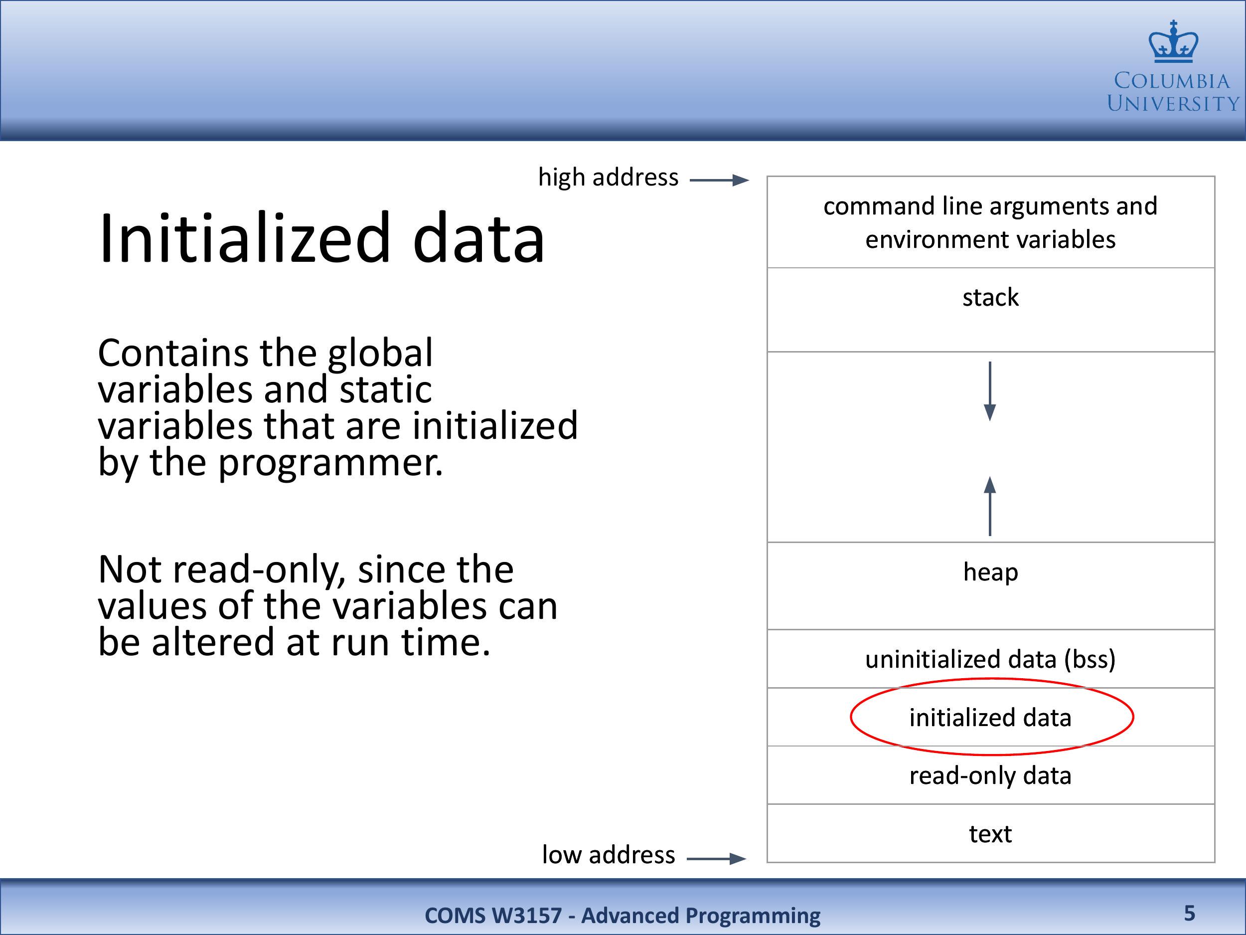 包含由程序员初始化的全局变量和静态变量。