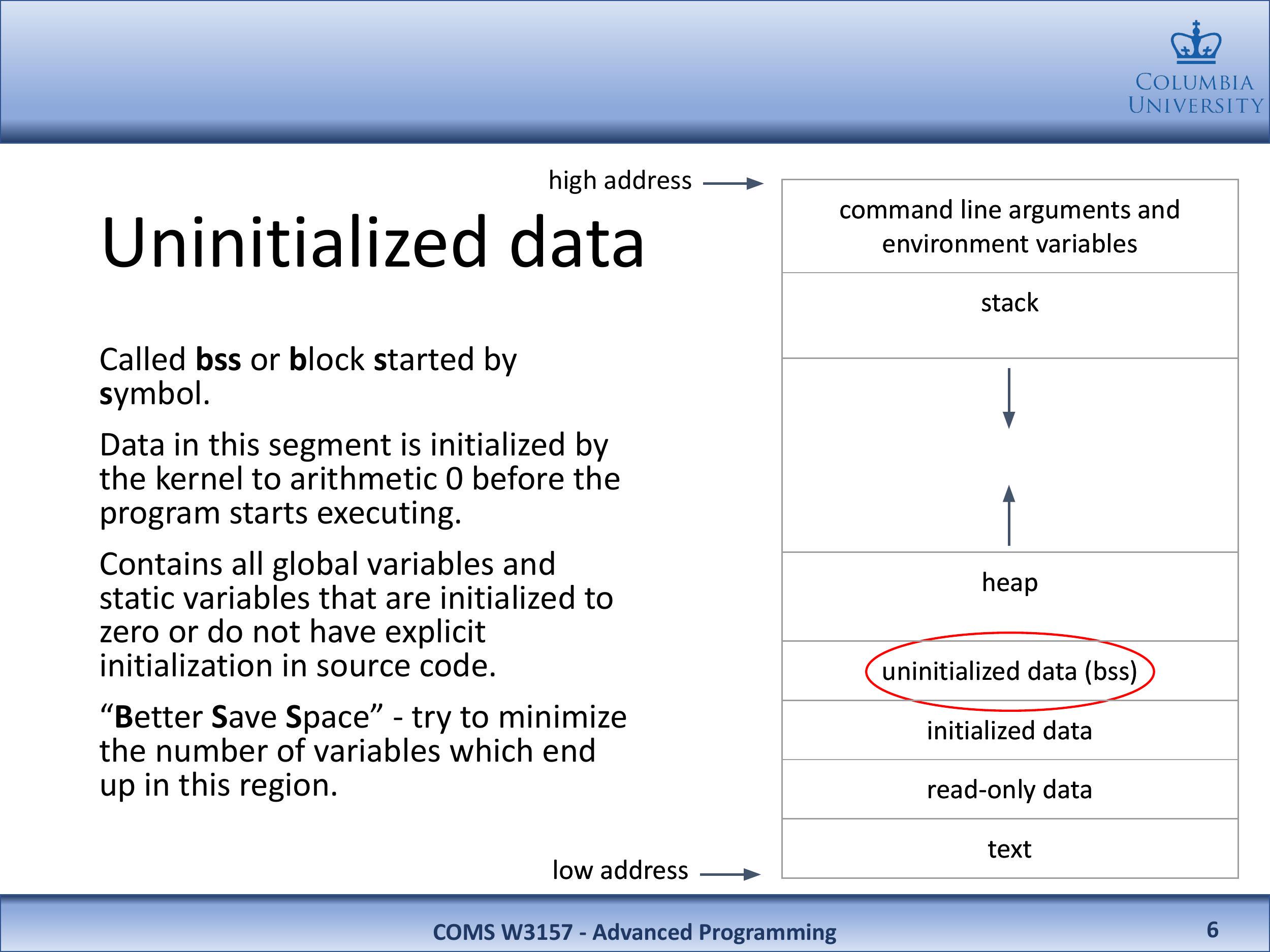 此段中的数据在程序开始执行前由内核初始化为算术 0。