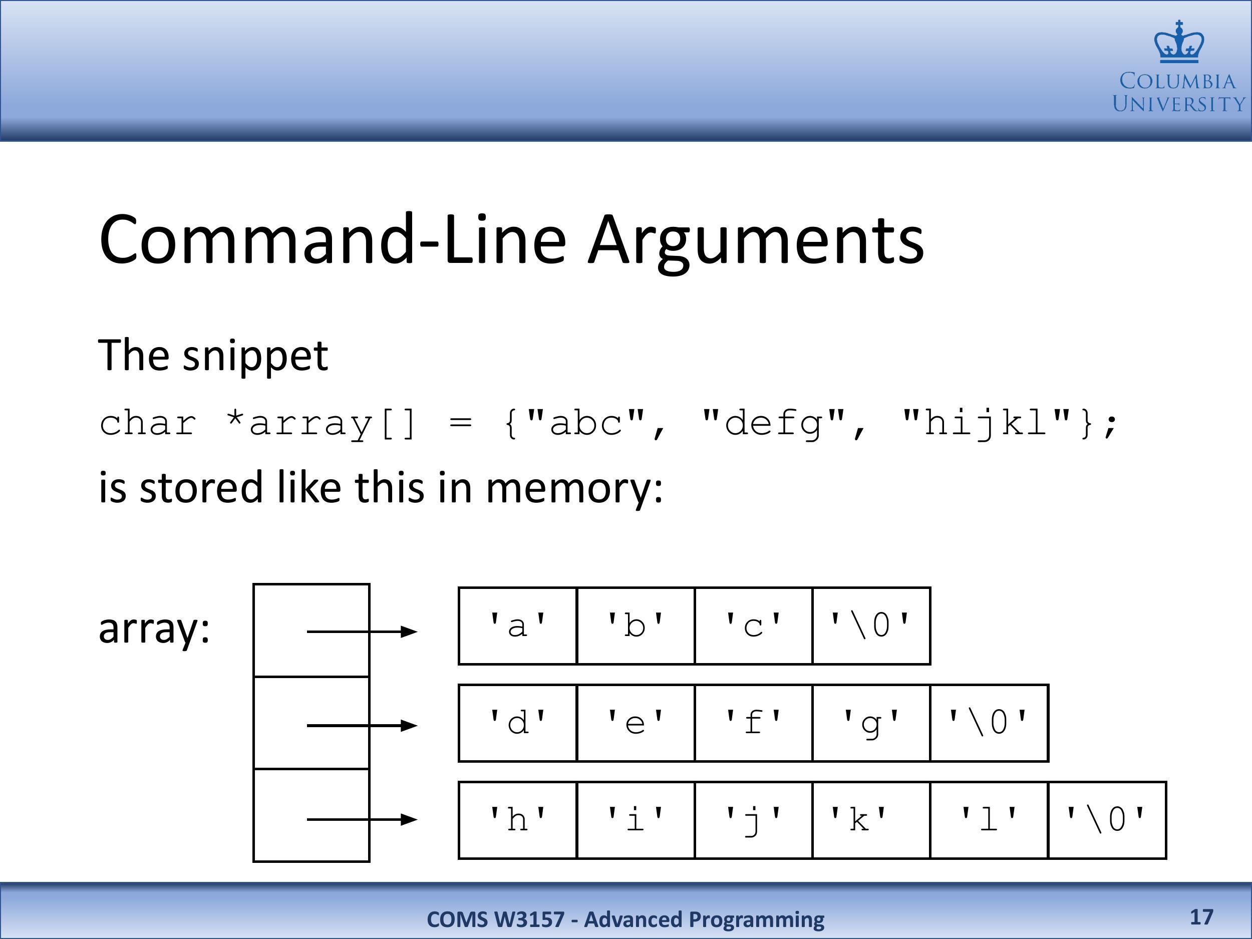 代码片段 char *array[] = {"a.bc", "defg", "hijkl"}; 在内存中是这样存储的: