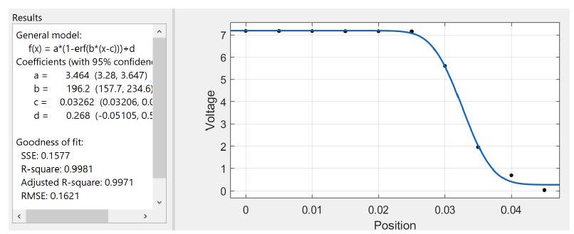 where erf is the error function. That is, by translating the flat edge across the x axis and recording the respective power, we can fit the data to 17 and extract the beam waist . A similar procedure can be performed on the y axis to determine .