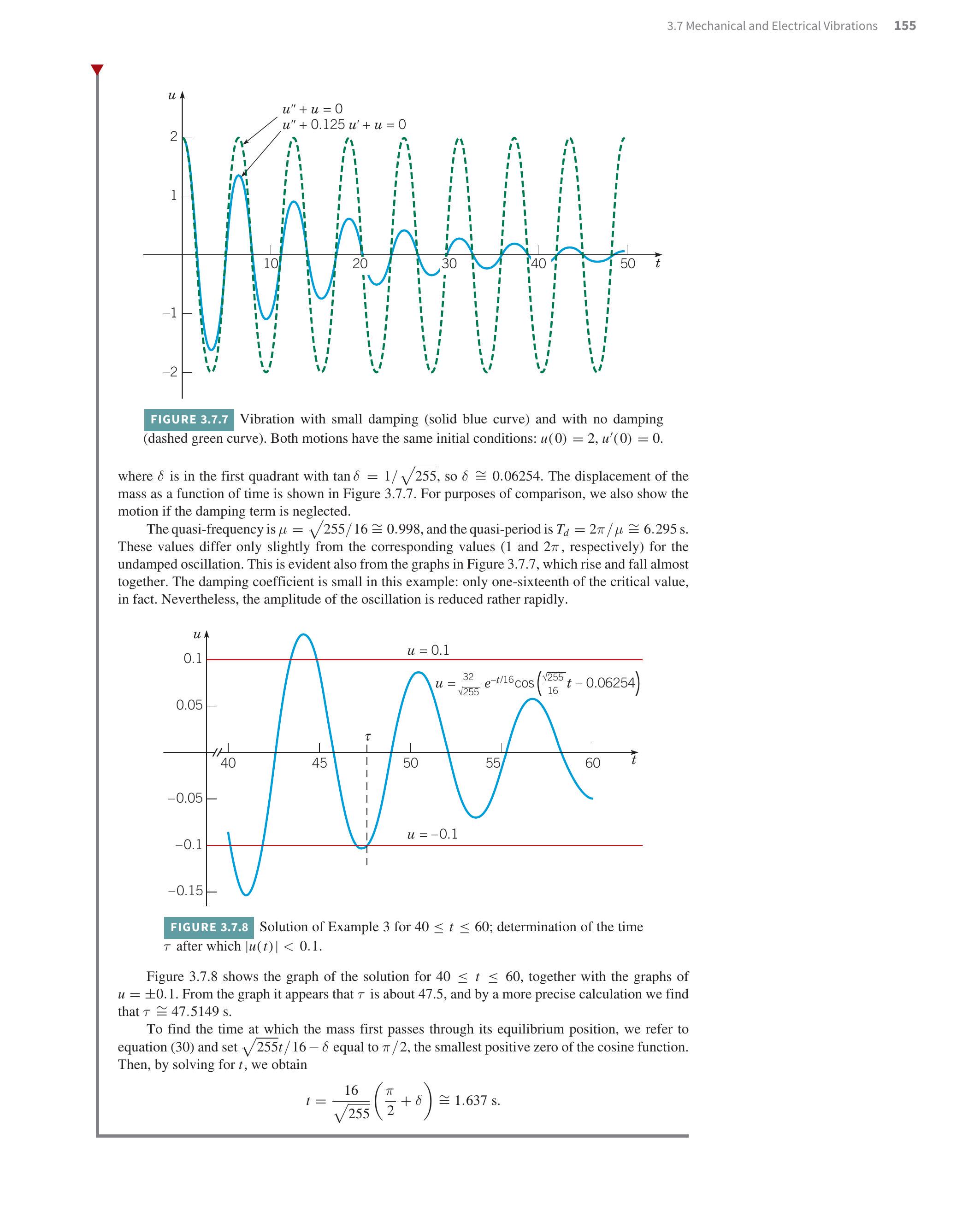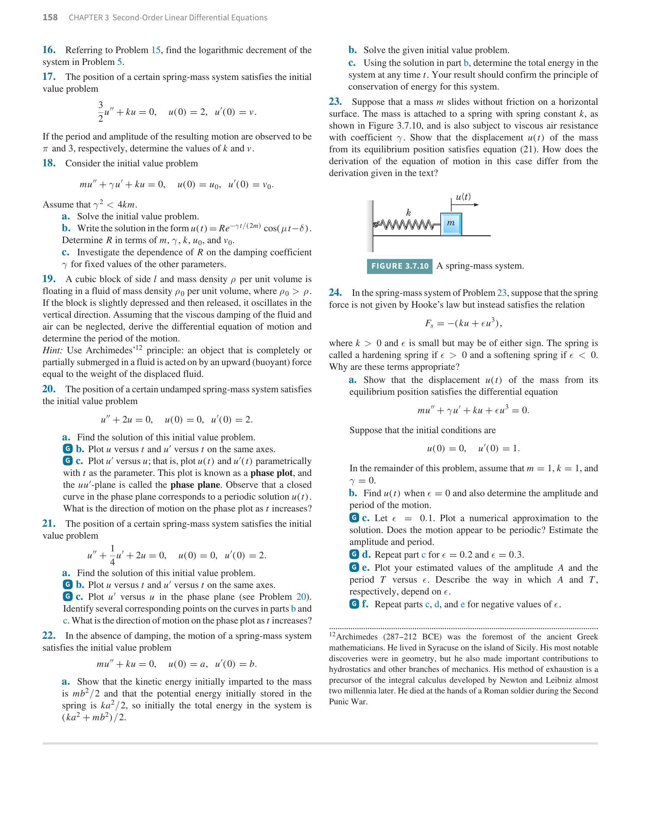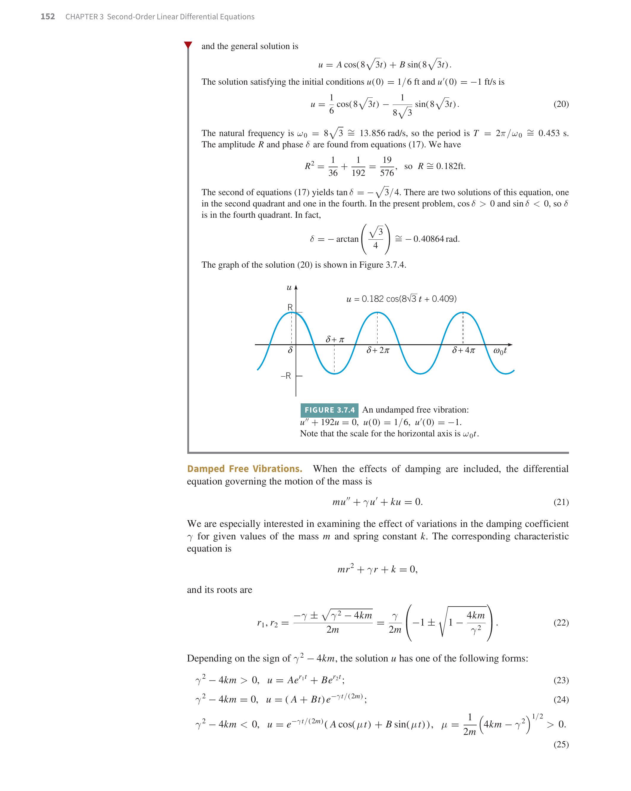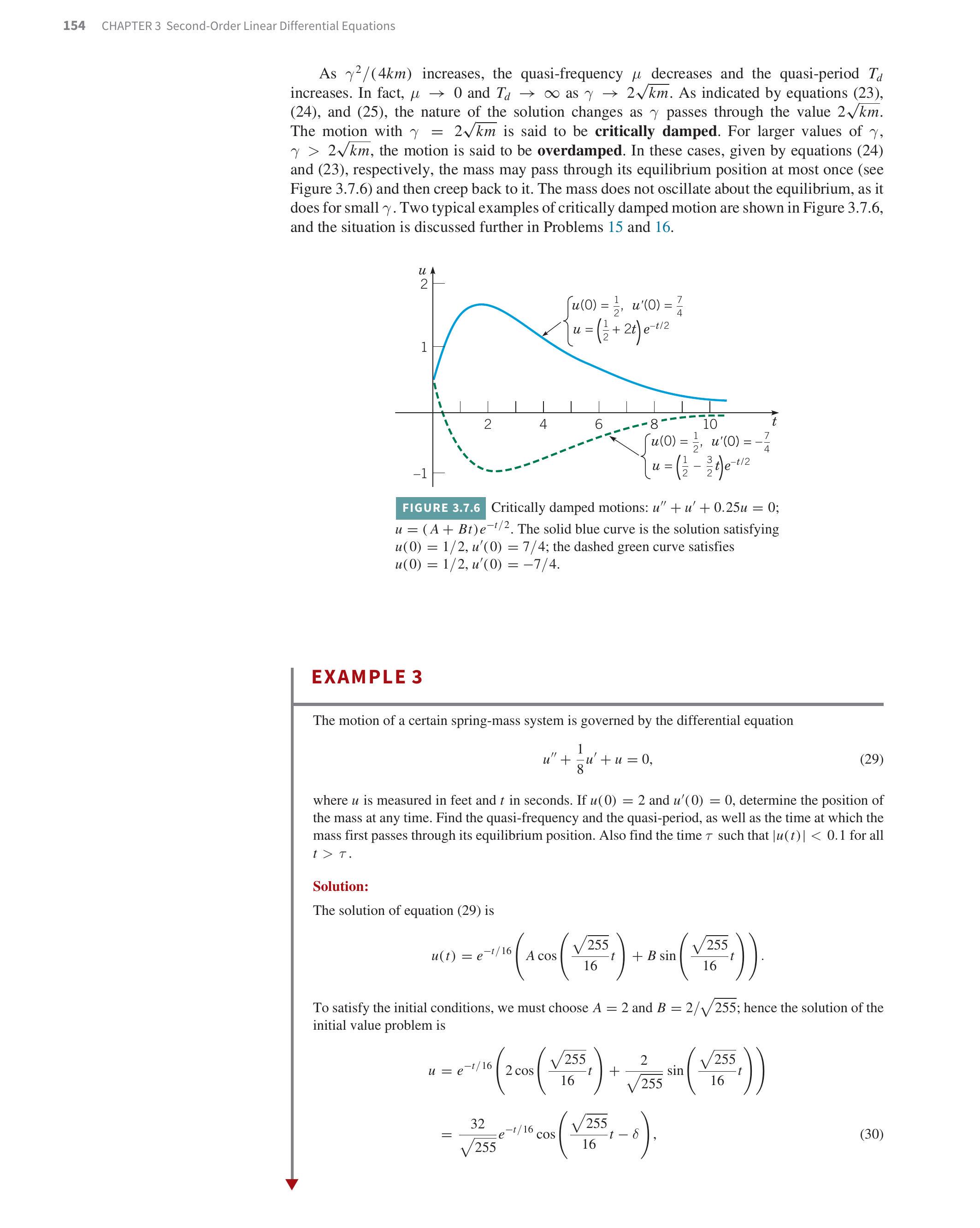 m u ′ ′ + γ u ′ + k u = 0 , u ( 0 ) = u 0 , u ′ ( 0 ) = v 0 . m u^{\prime \prime}+\gamma u^{\prime}+k u=0, \quad u(0)=u_{0}, \quad u^{\prime}(0)=v_{0} .