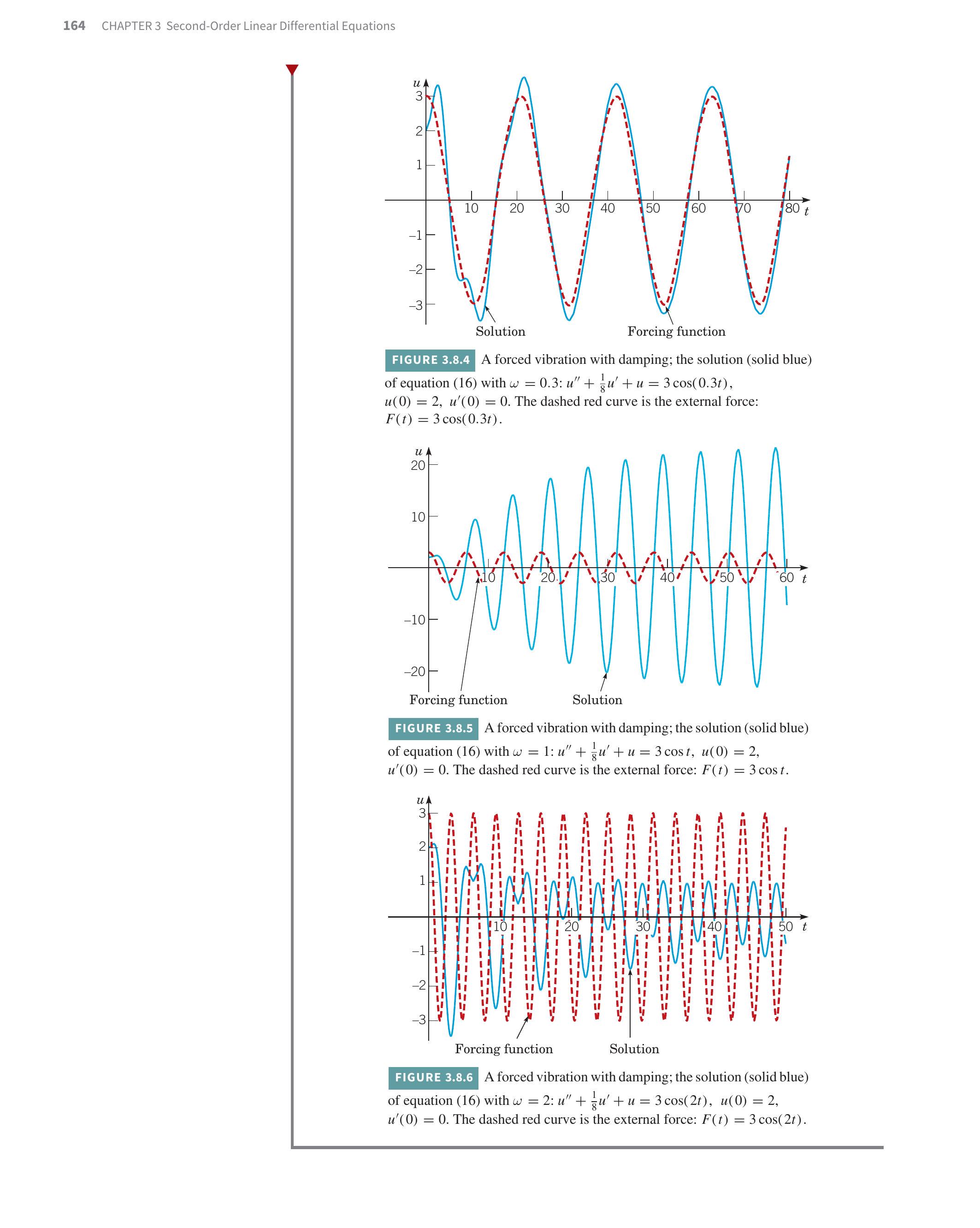 FIGURE 3.8.8 Resonance; the solution (solid blue) of equation (25):