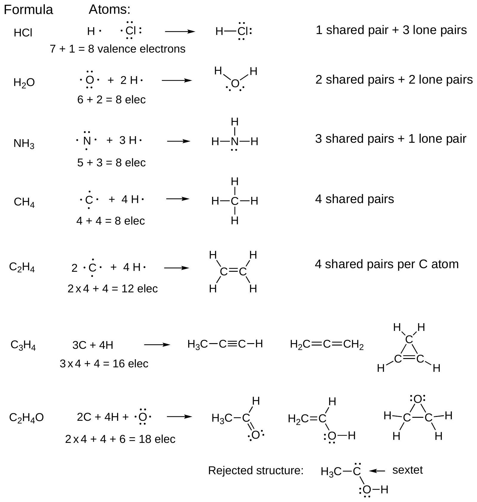 - 对于一个键,每个原子共享该电子对。两个电子都是每个原子八隅体的一部分。