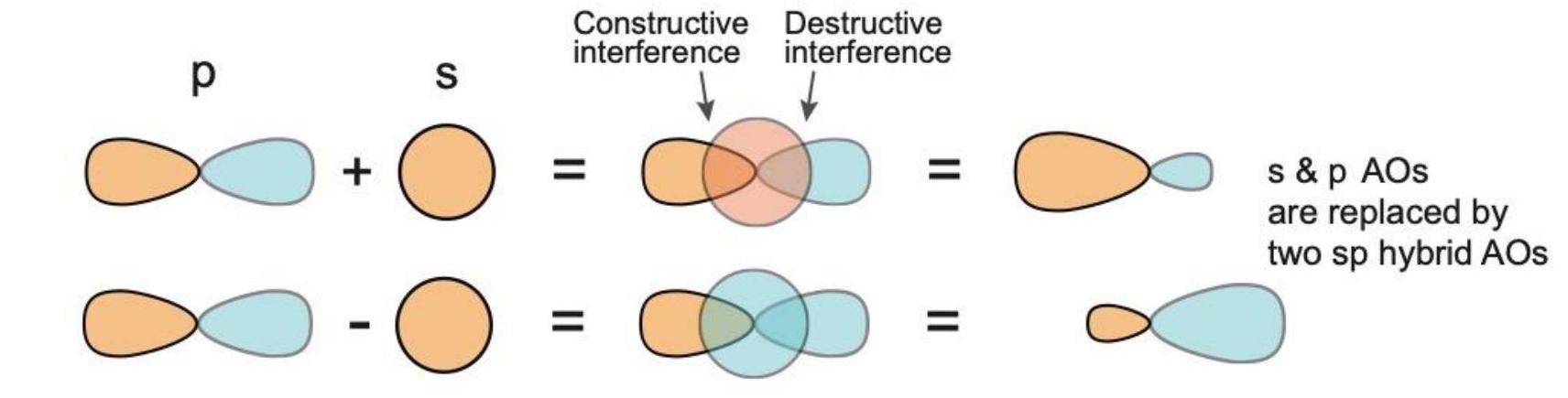 - sp 杂化对应基础的线性几何,理想键角为180°。