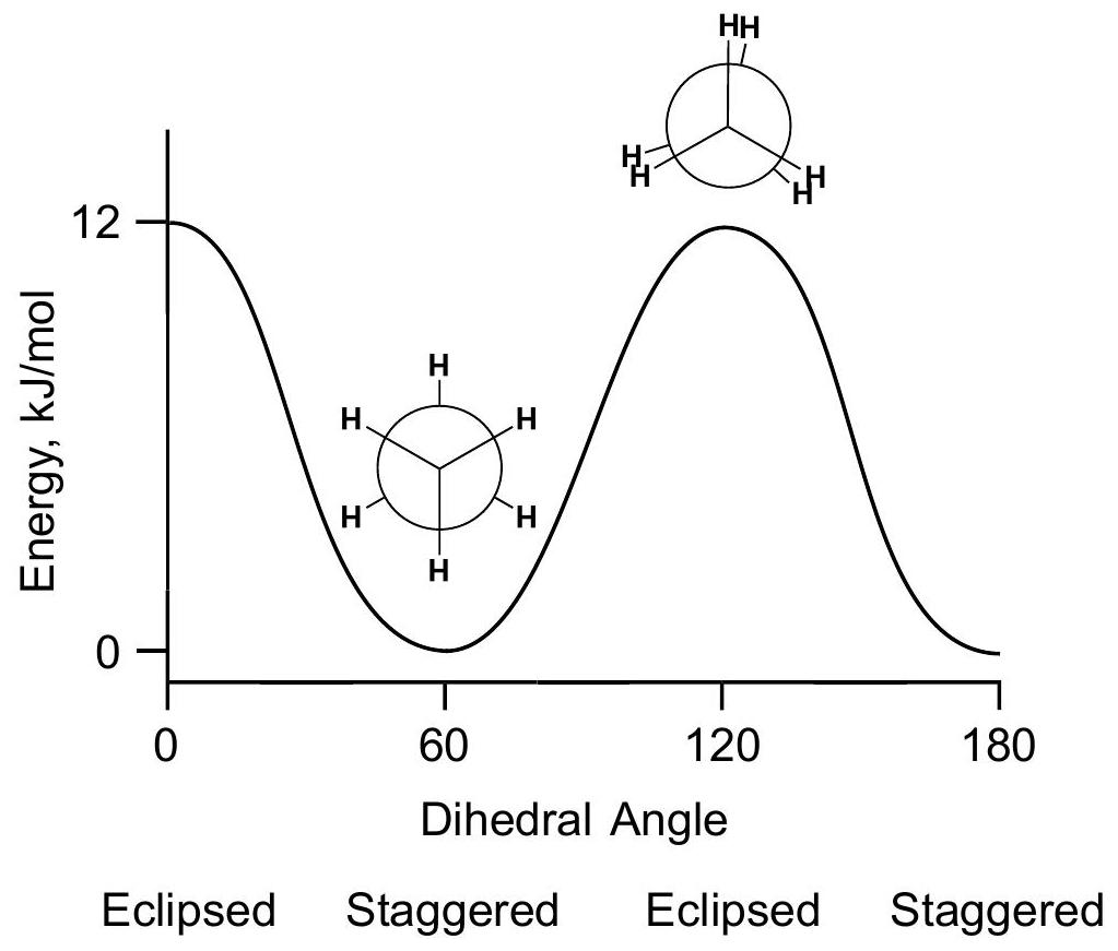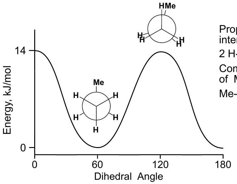 能量图与乙烷相同,但势垒energy barrier为 ,而不是 12。