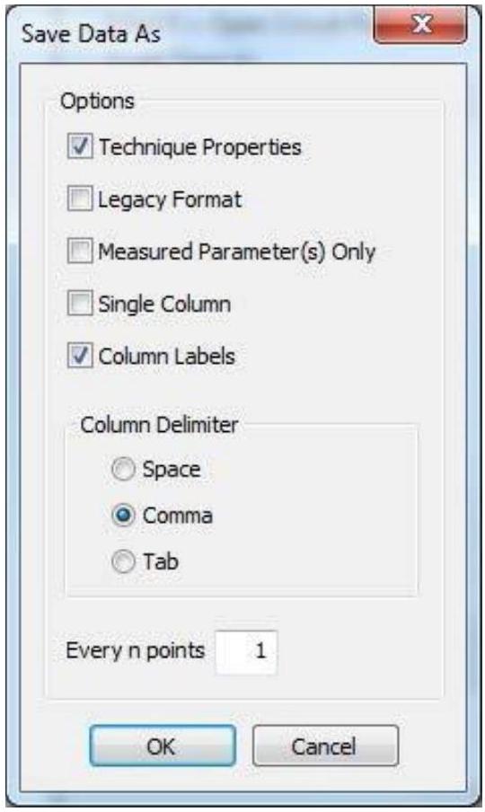 导出为文本文件:逐个打开每个 *.edata 文件。点击 File -> Save Data As...。在弹出的对话框(如手册图 6, P.19)中,将文件类型选择为文本文件(如 *.txt 或 *.csv)。在选项中,通常选择 Comma (逗号) 作为分隔符,并勾选 Column Labels (列标签),然后保存。