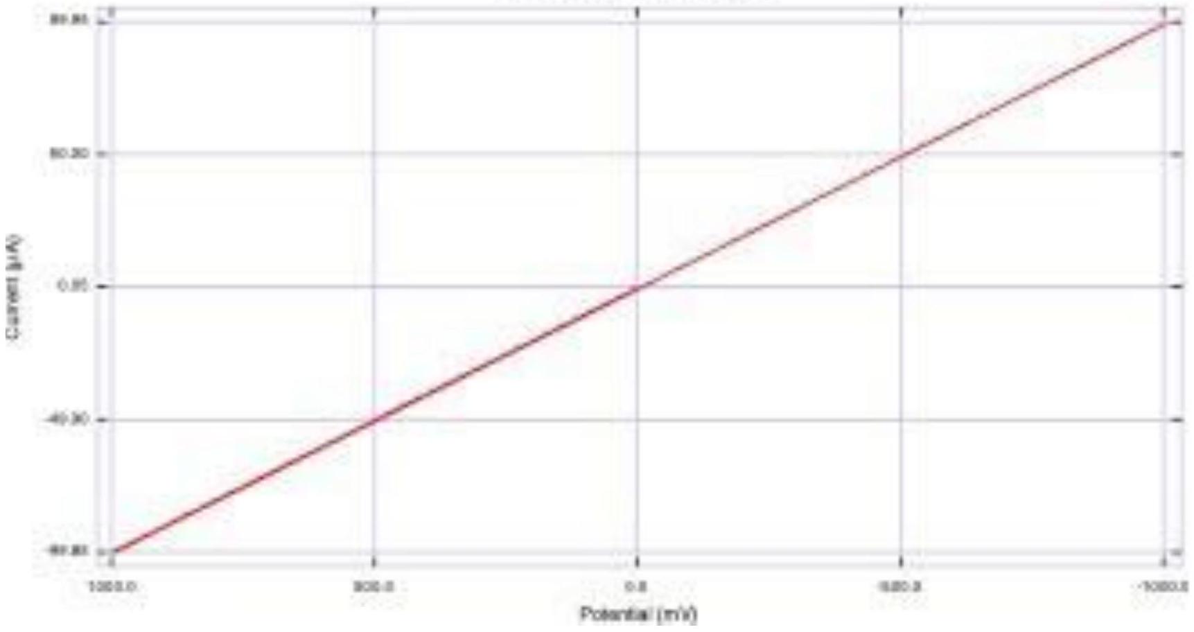 步骤目的:此测试的本质是让恒电位仪对一个纯粹的、理想的 10 kΩ 电阻进行一次快速的循环伏安扫描。根据欧姆定律 (),流经电阻的电流应与施加的电位成完美的线性关系。此测试可以一举验证:(a) 动态数模转换器(DAC)能否准确生成线性扫描的电压波形;(b) 电流-电压转换器和模数转换器(ADC)能否精确测量响应电流。