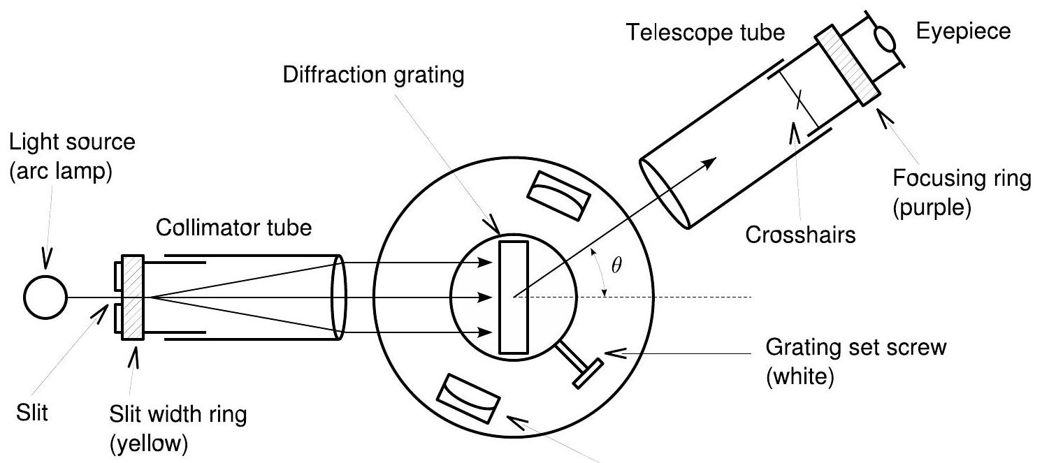 Figure 7.2: Schematic of the spectrometer you will use to observe the hydrogen spectrum.