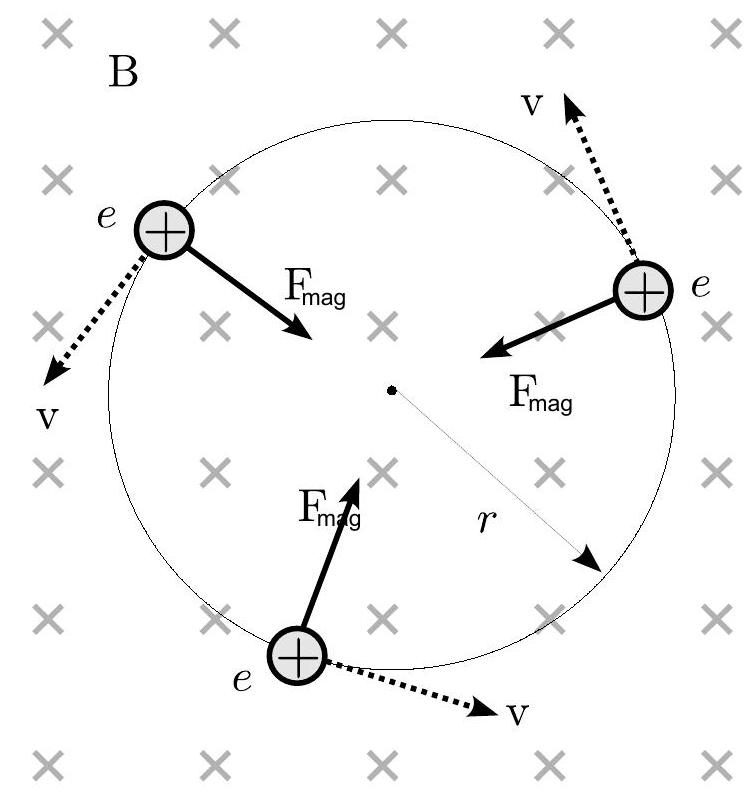 Thomson's experiment, and the one we will conduct today, is a simple application of the motion of a charged particle in a magnetic field. Recall that if a particle of charge moves with velocity into a region with some magnetic field , it will feel a magnetic deflection force