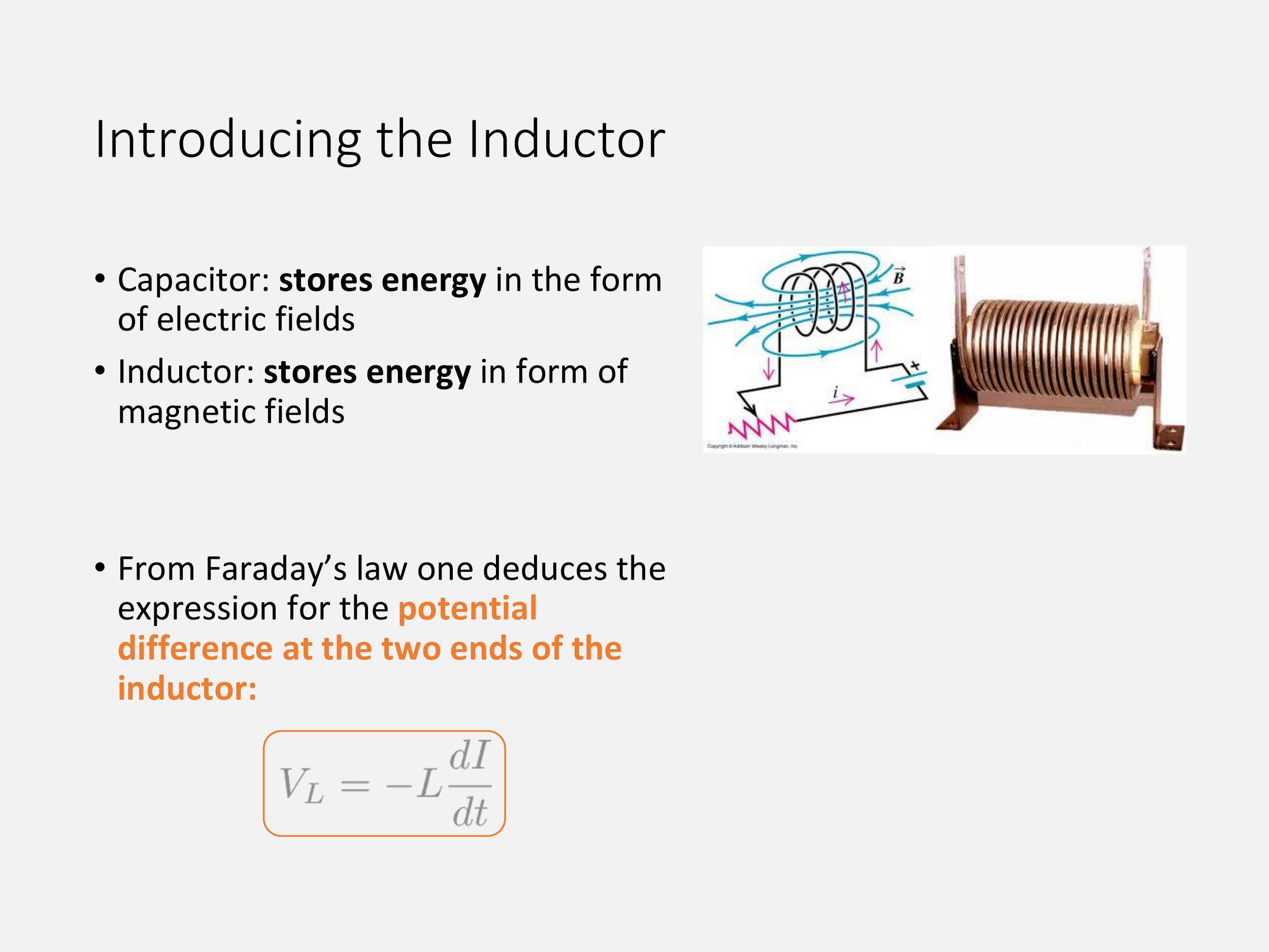 From Faraday's law one deduces the expression for the potential difference at the two ends of the inductor: