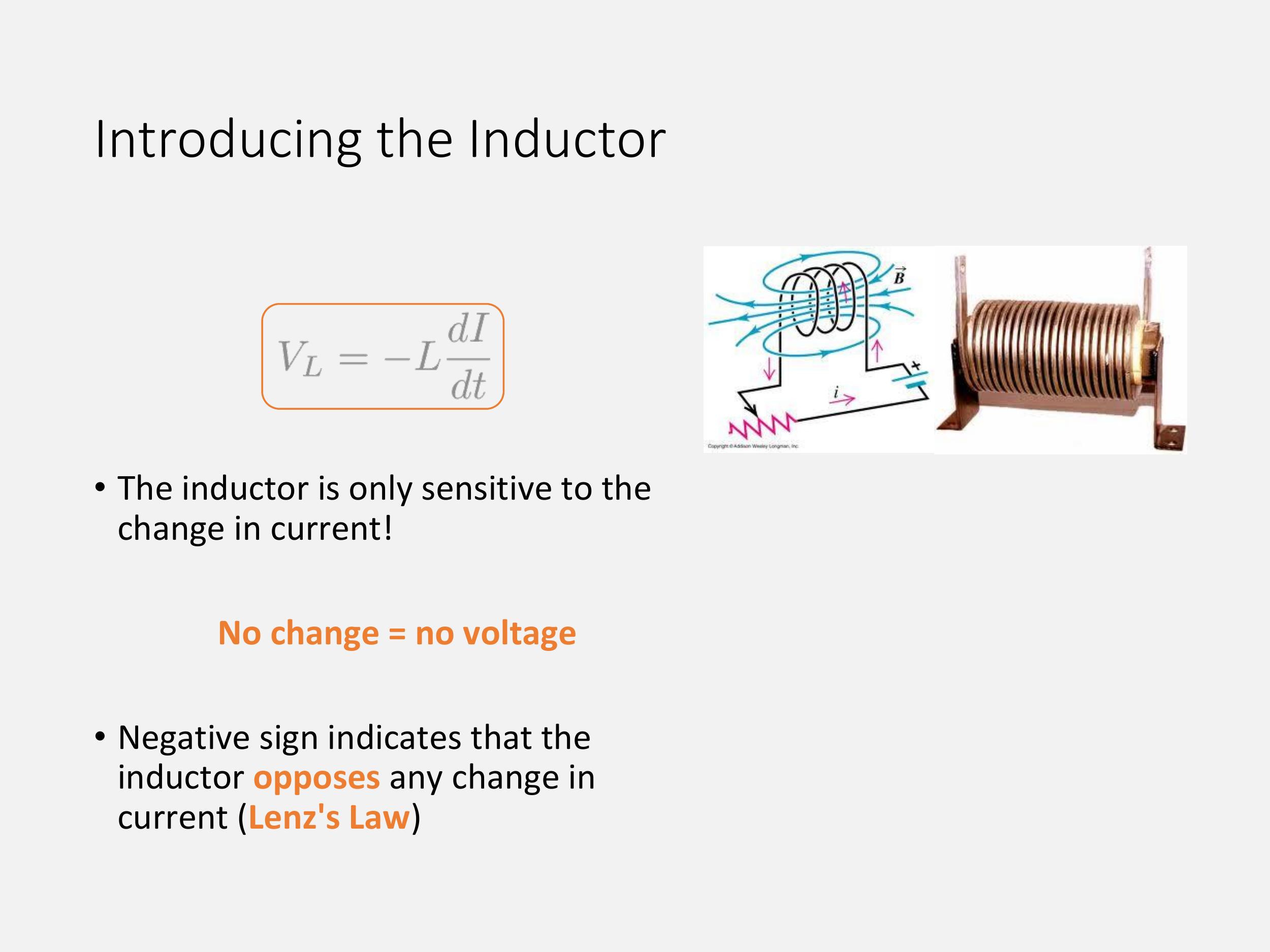 Negative sign indicates that the inductor opposes any change in current (Lenz's Law)