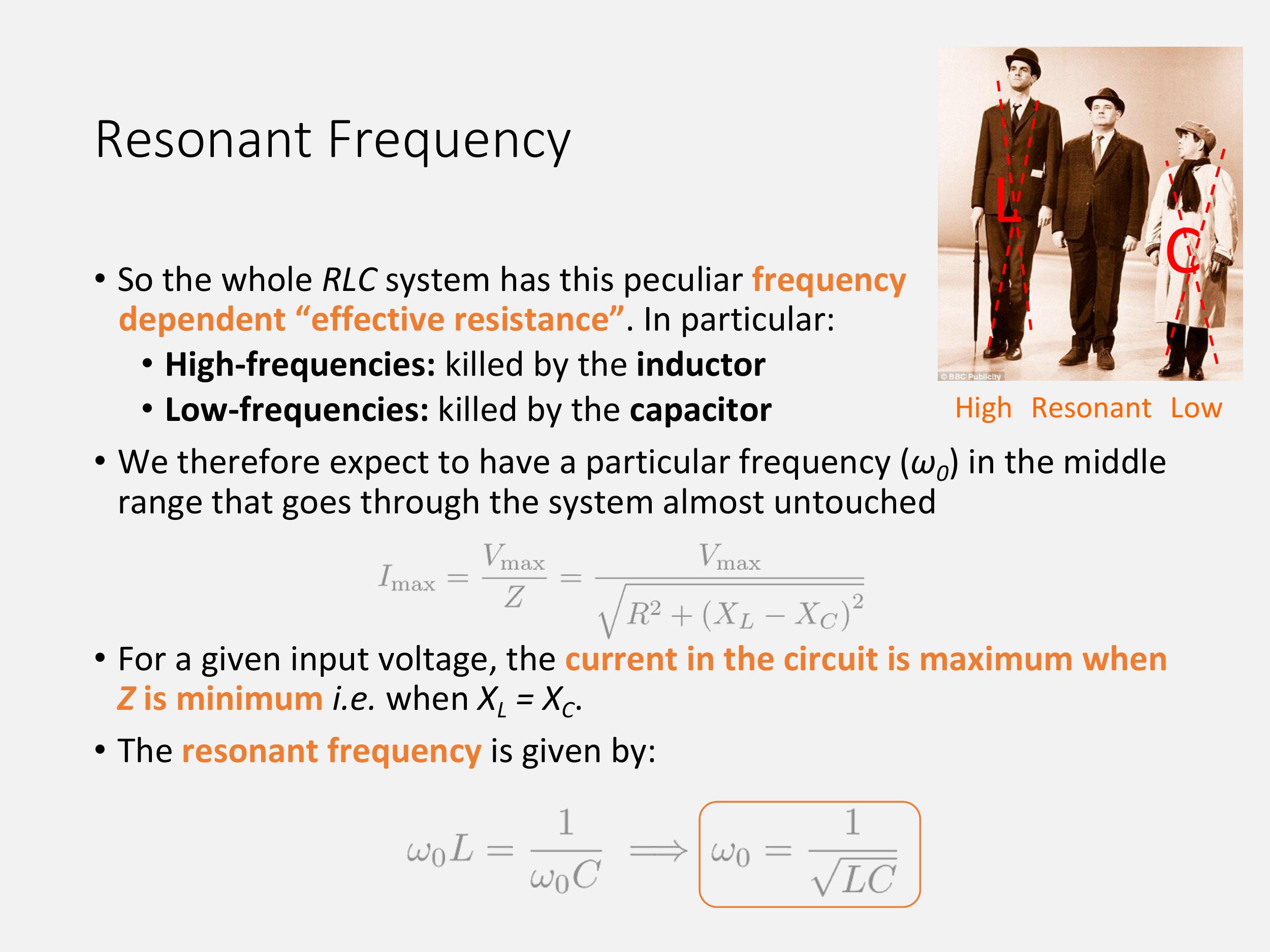 So the whole RLC system has this peculiar frequency dependent "effective resistance". In particular: