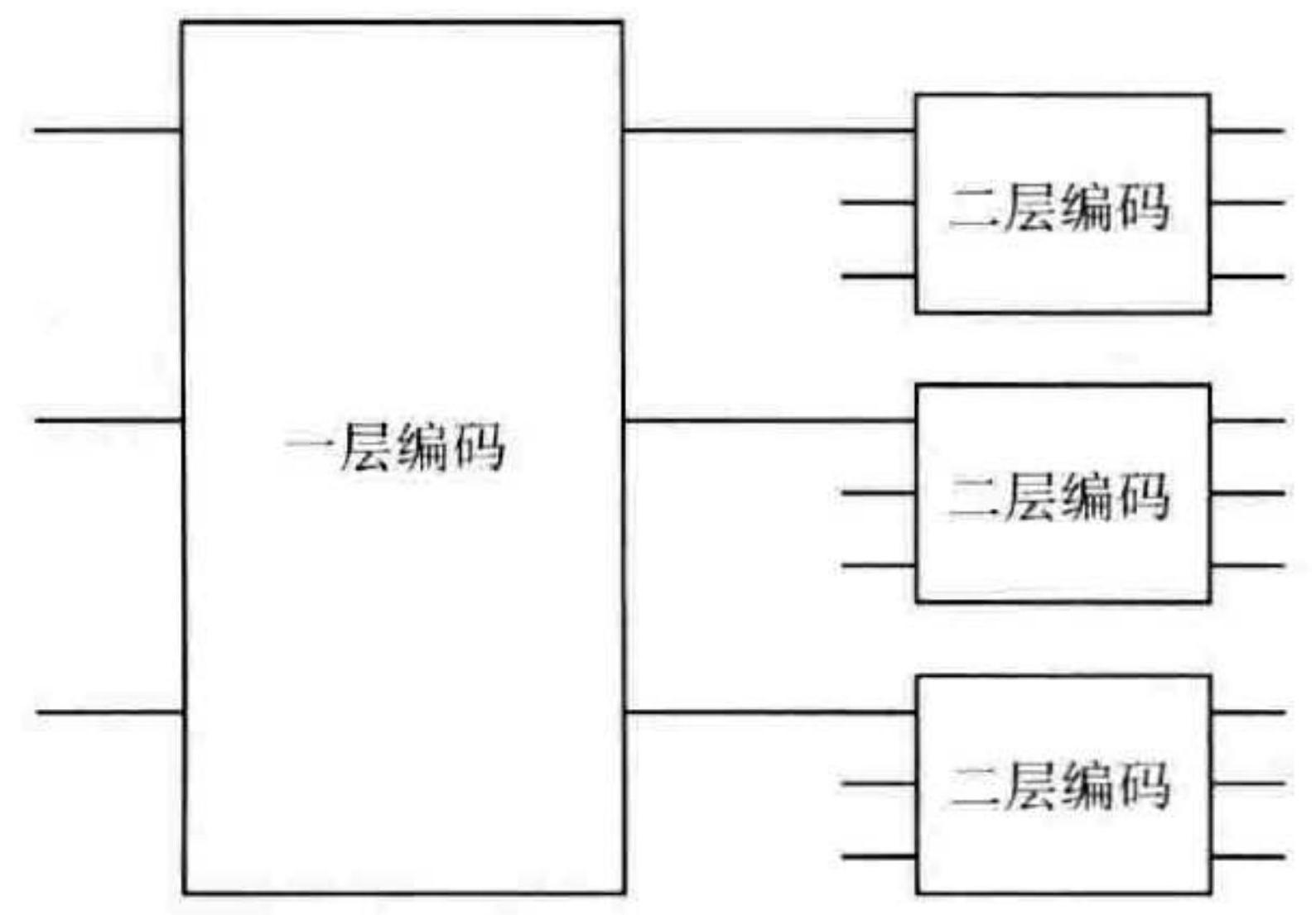 图 10-22 一个两层级联编码,将 1 个量子比特编码成 9 个。为了简单,我们使用的是三量子比特编码。在实际应用中,我们看到的往往是像 Steane 纠错码这样能纠正一个或多个量子比特上任意错误的编码