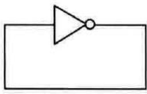更一般地,电路可能包含许多输人和输出比特,许多导线和许多逻辑门。逻辑门是从某些固定的 $k$ 个输人比特到某些固定的 $l$ 个输出比特的函数 $f:{0,1}^{k} \rightarrow{0,1}^{l}$ 。例如,非门是具有一个输人比特和一个输出比特的门,它计算函数 $f(a)=1 \oplus a$ ,其中 $a$ 是单个比特,且 $\oplus$ 是模 2 加法。通常约定电路中不允许循环,以避免可能出现的不稳定性,如图 3-3 所示。我们说这样的电路是无环的,并且我们坚持电路计算模型中的电路是无环的这一惯例。
