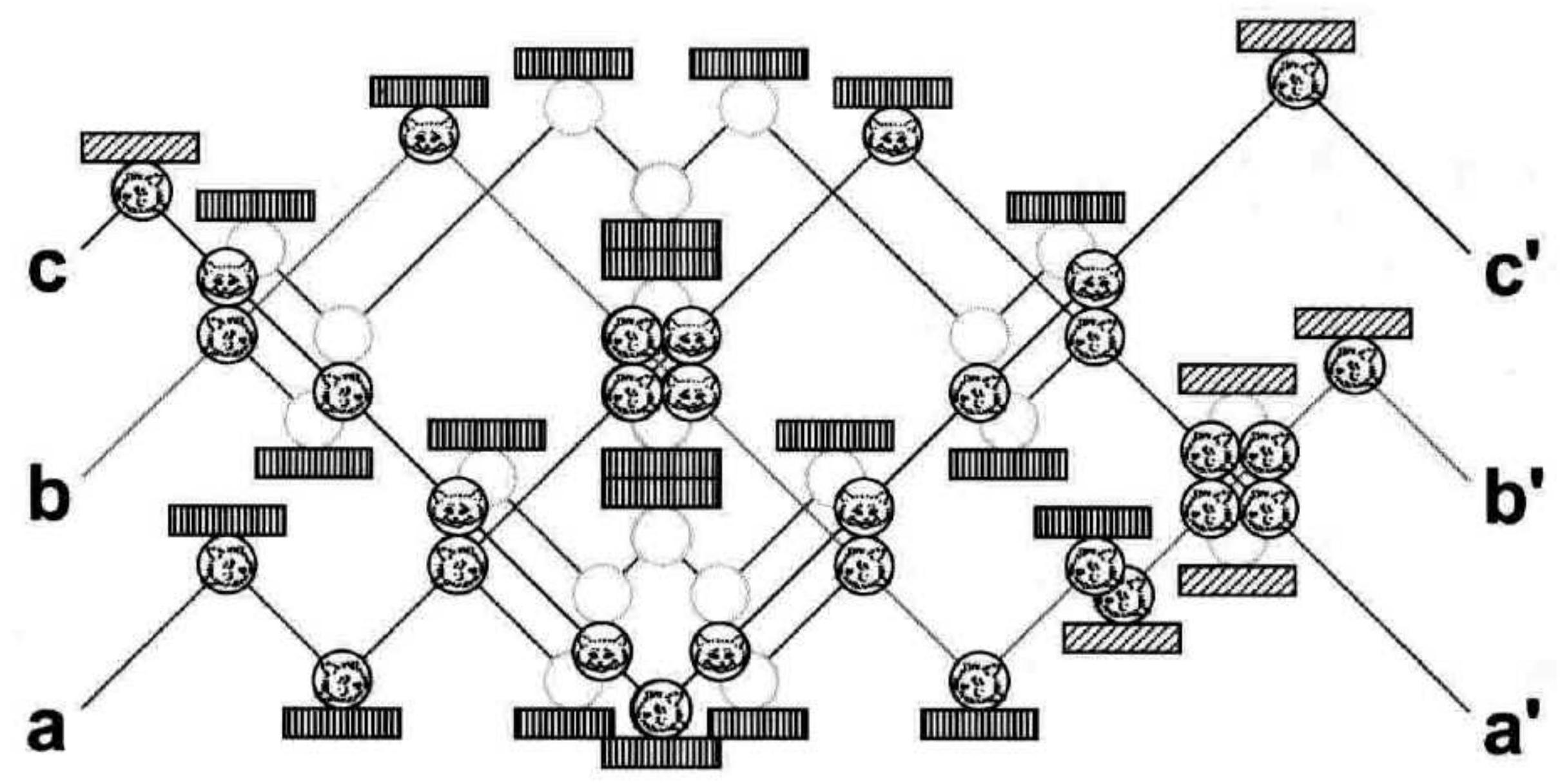 检查图 3-14 中的台球路径,不难发现这台台球计算机确实实现了 Fredkin 门: