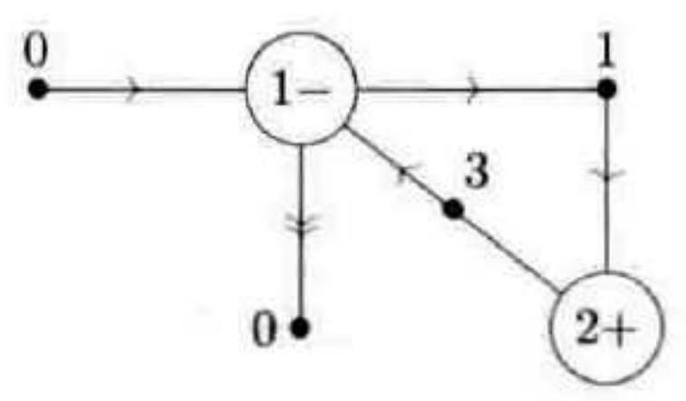 表示如当前处于位置 $m$ 且寄存器 $r_{j}$ 中的值为正数,则将寄存器 $r_{j}$ 减一并将位置移动到点 $n$ ;如寄存器 $r_{j}$ 中的值为零,则不改变 $r_{j}$ 的中值并将当前位置移动到点 $p_{\circ}$ 一段 Minsky 机的程序由上述两种指令构成,形如: