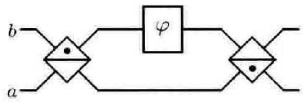 习题 7.10 (马赫-曾德尔干涉仪)干涉仪是一个用于测量小相移的光学工具,它包含两个分束器。其基本操作原理可以通过如下的习题得以理解。