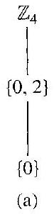 $\mathbb{Z}_{4}$唯一的非平凡真子群是$\{0,2\}$。注意$\{0,3\}$不是$\mathbb{Z}_{4}$的子群,因为$\{0,3\}$在+下不封闭。例如,$3+3=2$,而$2 \notin\{0,3\}$。然而,群$V$有三个非平凡真子群,$\{e, a\}$,$\{e, b\}$和$\{e, c\}$。这里$\{e, a, b\}$不是子群,因为$\{e, a, b\}$在$V$的运算下不封闭,因为$ab=c$,而$c \notin\{e, a, b\}$。