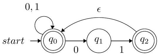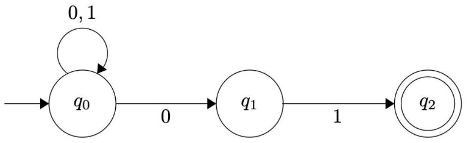 - 取上面 01 的 NFA ($q_0 \to q_1 \to q_2$)。