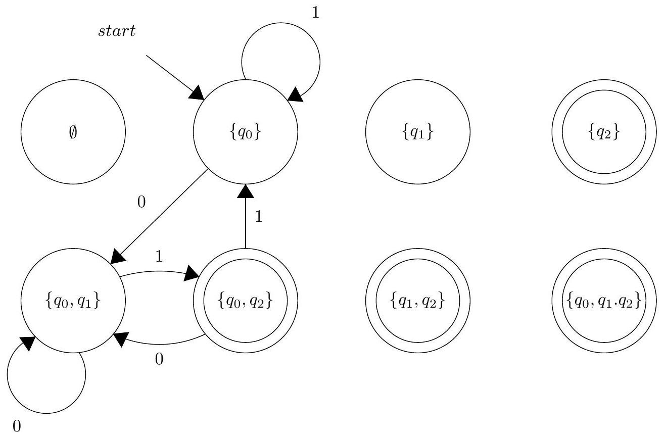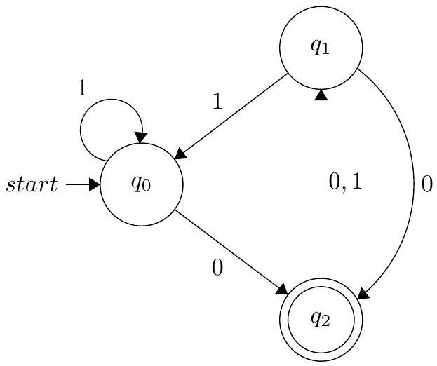 - 从 $q_1$ 到 $q_2$ 有一条标签为 0 的边。