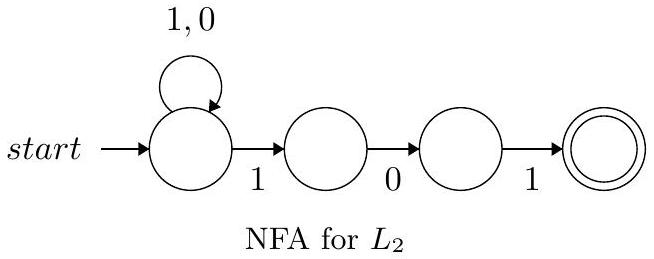 - 构造 1: $s_2 \xrightarrow{1} s_3$ ($s_3$ 接受)。