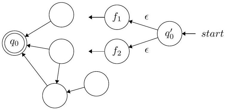 - 并集: $R_1 \cup R_2$ -> (new_start) --e--> (start_1), (new_start) --e--> (start_2)