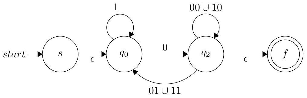 - 如果上一步从 $q_0$ 到 $f$ 的边是 $\epsilon \cup 0(00 \cup 10)^*$。