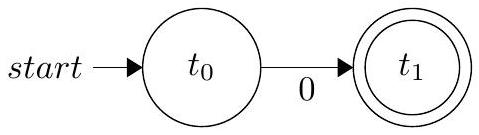 - 构造 0: $s_0 \xrightarrow{0} s_1$ ($s_1$ 接受)。