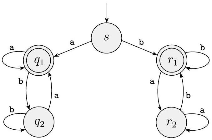 这个表达式与 $F=\left(F_{1} \times Q_{2}\right) \cup\left(Q_{1} \times F_{2}\right)$ 相同。(请注意,它与 $F=F_{1} \times F_{2}$ 不同。那会给我们什么呢? ${ }^{3}$)