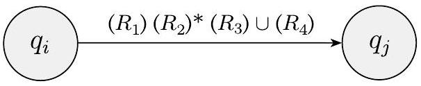 我们为从任何状态 $q_{i}$ 到任何状态 $q_{j}$ 的每个箭头进行此更改,包括 $q_{i}=q_{j}$ 的情况。新机器识别原始语言。