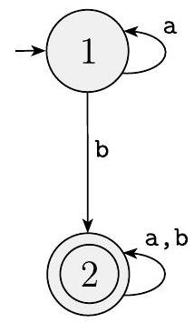 形式上,$N=\left(\left\{q_{1}, q_{2}\right\}, \Sigma, \delta, q_{1},\left\{q_{2}\right\}\right)$,其中我们通过说明 $\delta\left(q_{1}, a\right)=\left\{q_{2}\right\}$ 以及对于 $r \neq q_{1}$ 或 $b \neq a$ 时 $\delta(r, b)=\emptyset$ 来描述 $\delta$。