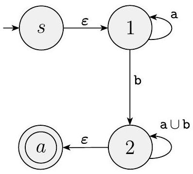 从正则表达式 $(\mathrm{ab} \cup \mathrm{a})^{*}$ 构建 NFA