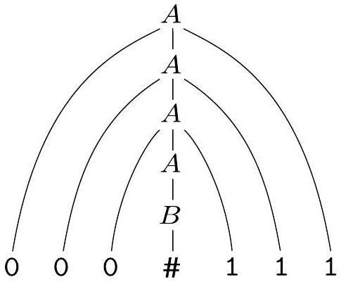 $$ \begin{aligned} & A \rightarrow 0 A 1 \\ & A \rightarrow B \\ & B \rightarrow \# \end{aligned} $$