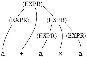 $$ \langle\mathrm{EXPR}\rangle \rightarrow\langle\mathrm{EXPR}\rangle+\langle\mathrm{EXPR}\rangle|\langle\mathrm{EXPR}\rangle \times\langle\mathrm{EXPR}\rangle|(\langle\mathrm{EXPR}\rangle) \mid \mathrm{a} $$