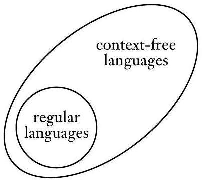 我们刚刚证明了下推自动机识别上下文无关语言的类。这个证明使我们能够建立正则语言和上下文无关语言之间的关系。因为每个正则语言都由一个有限自动机识别,并且每个有限自动机都是一个简单地忽略其栈的下推自动机,所以我们现在知道每个正则语言也是一个上下文无关语言。